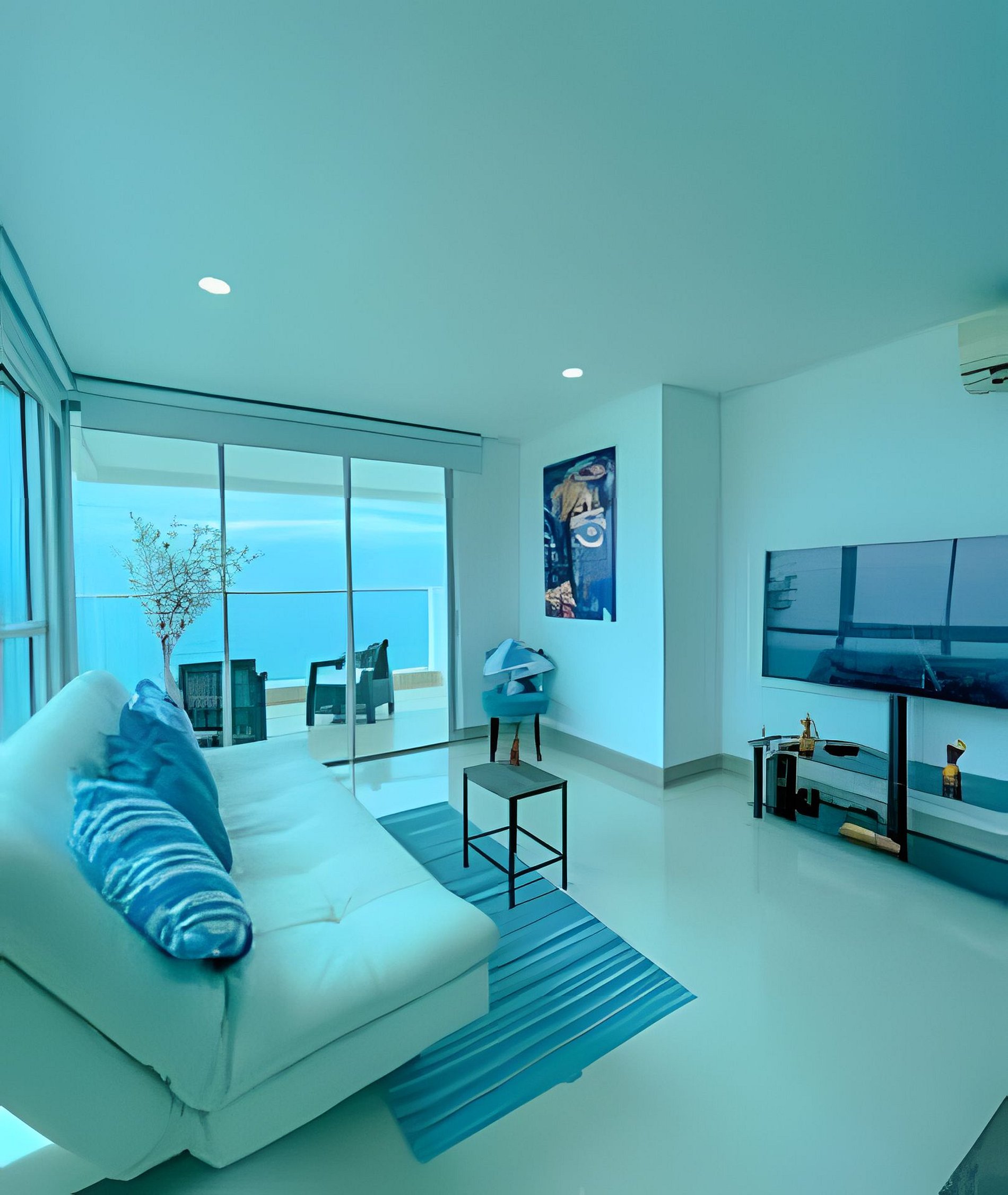 Sala: equipada con TV y aire acondicionado.