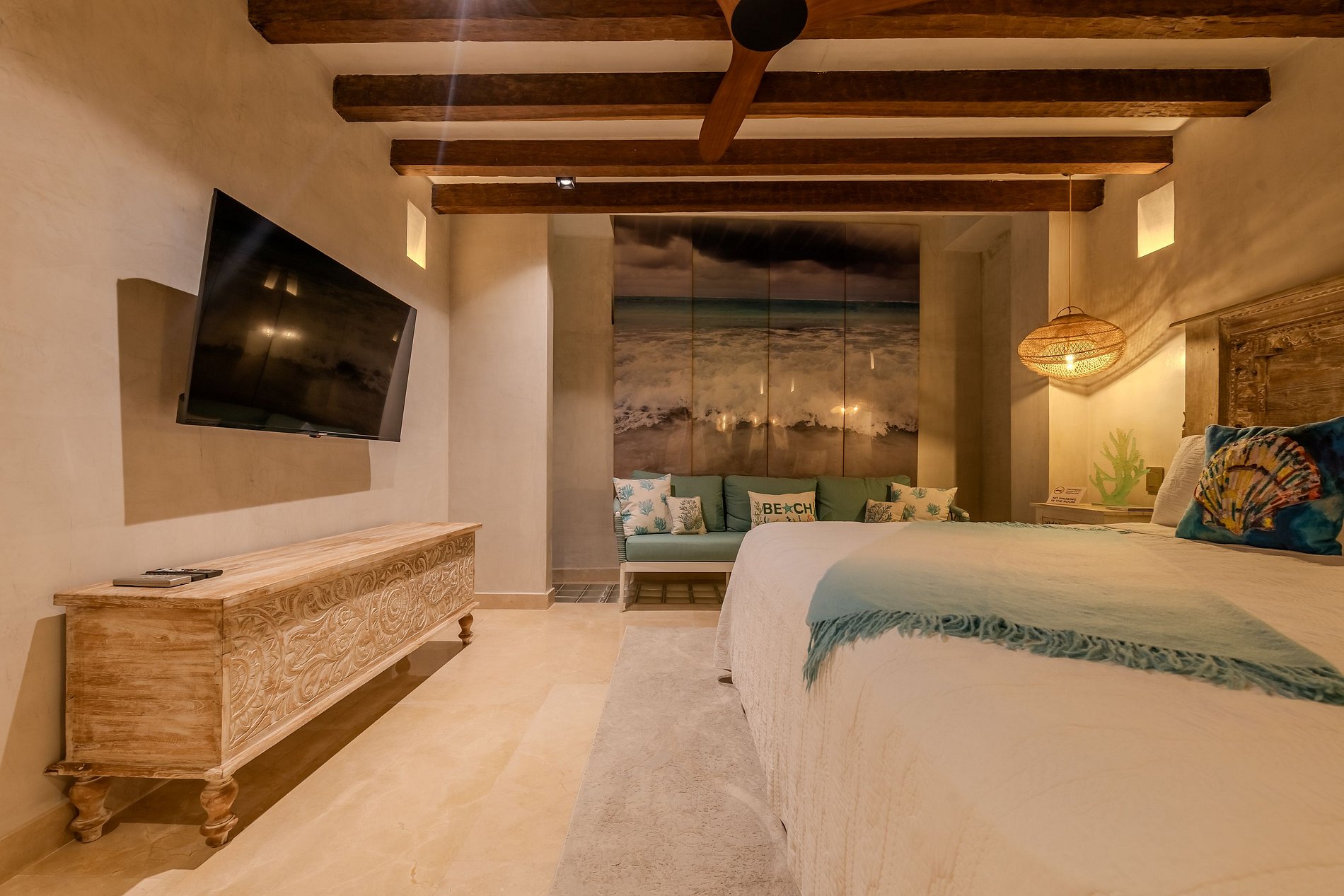 Cama king · TV · A/C · ventilador de techo · sofá · baño privado