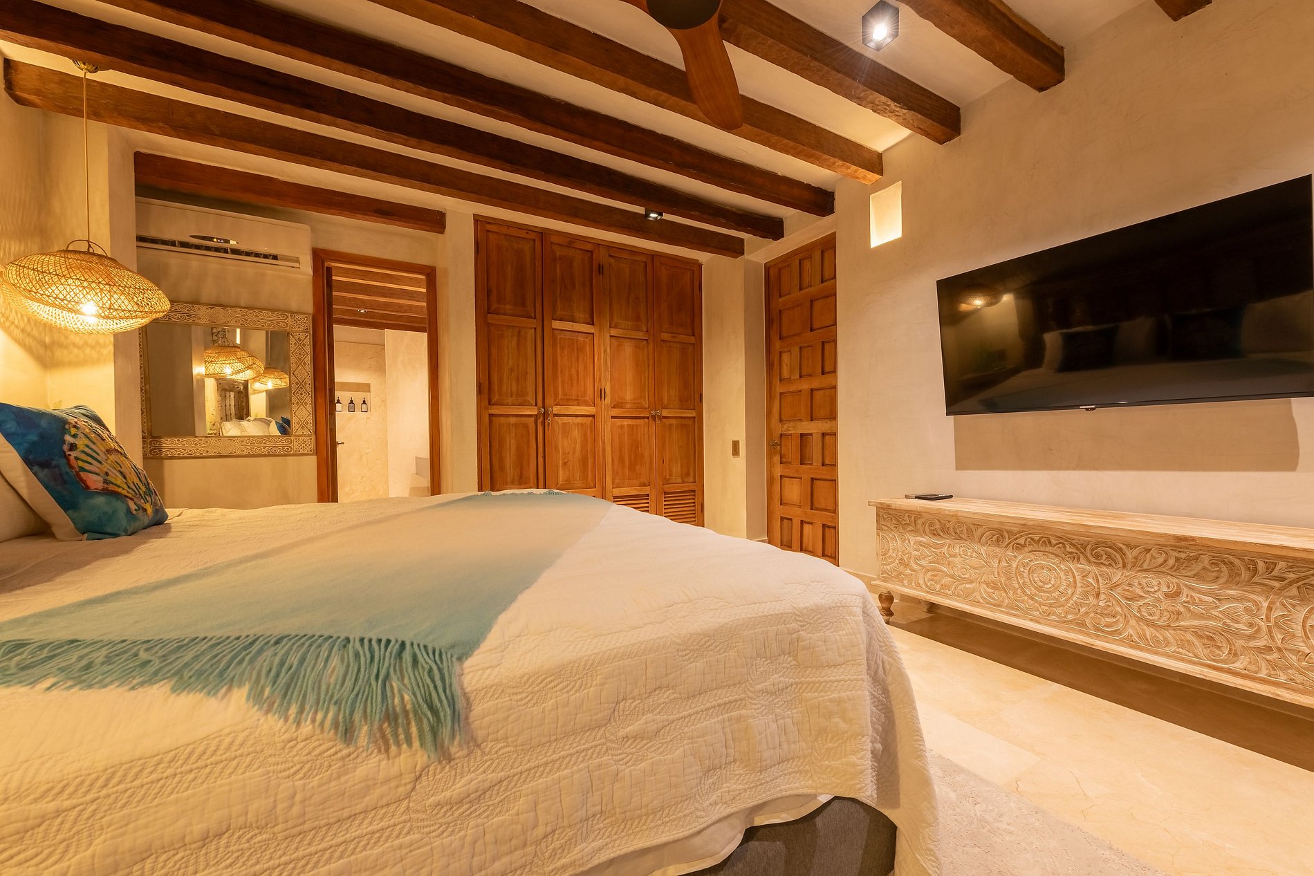 Cama king · baño privado · TV satelital · A/C · Wi-Fi · plancha · secador de pelo · amenidades · clóset