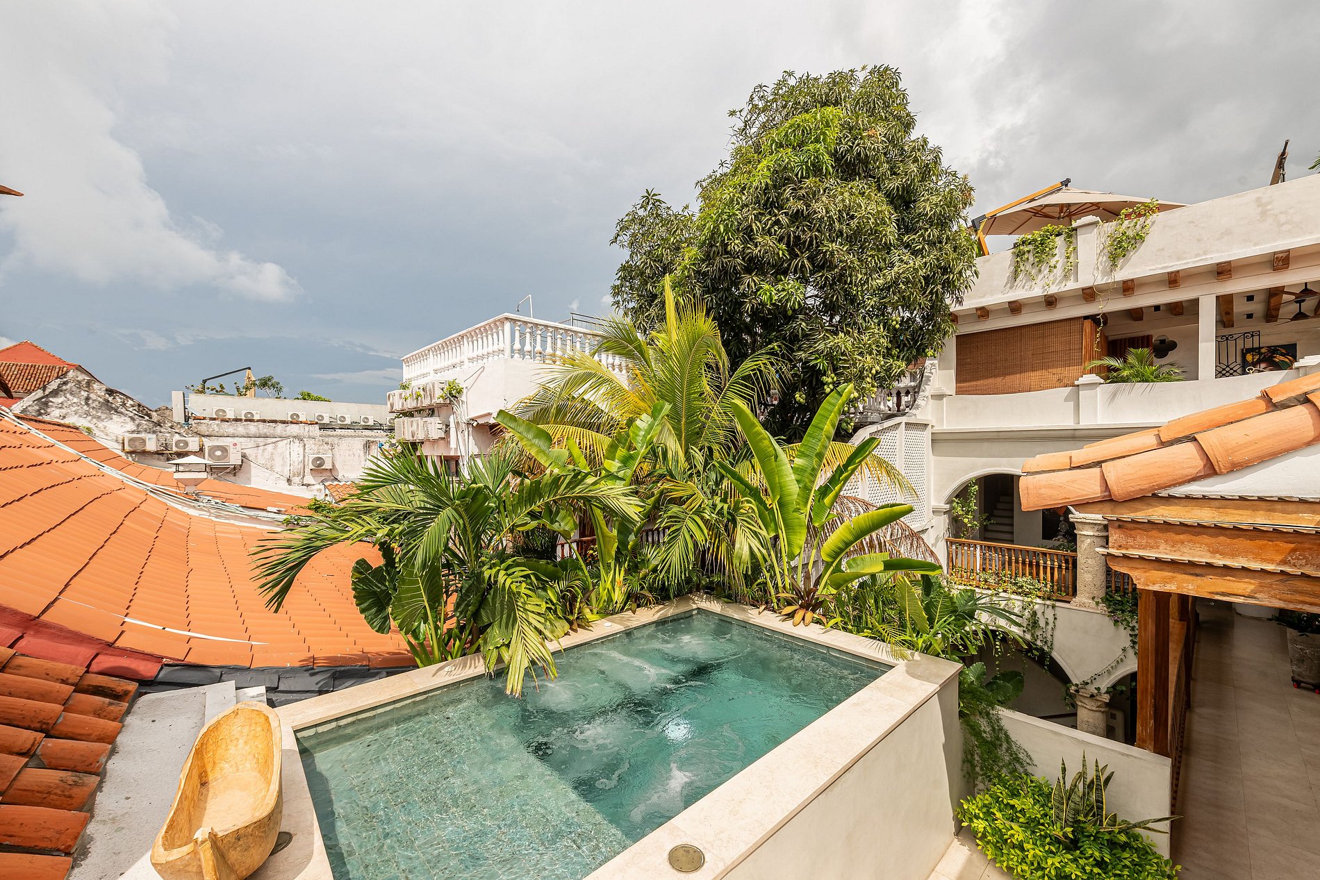 Tendrás acceso total a los espacios más extraordinarios de la casa: una piscina privada, un jacuzzi privado y una espectacular terraza en el cuarto piso con una vista panorámica del Centro Histórico que sencillamente es salvaje y te dejará sin aliento.