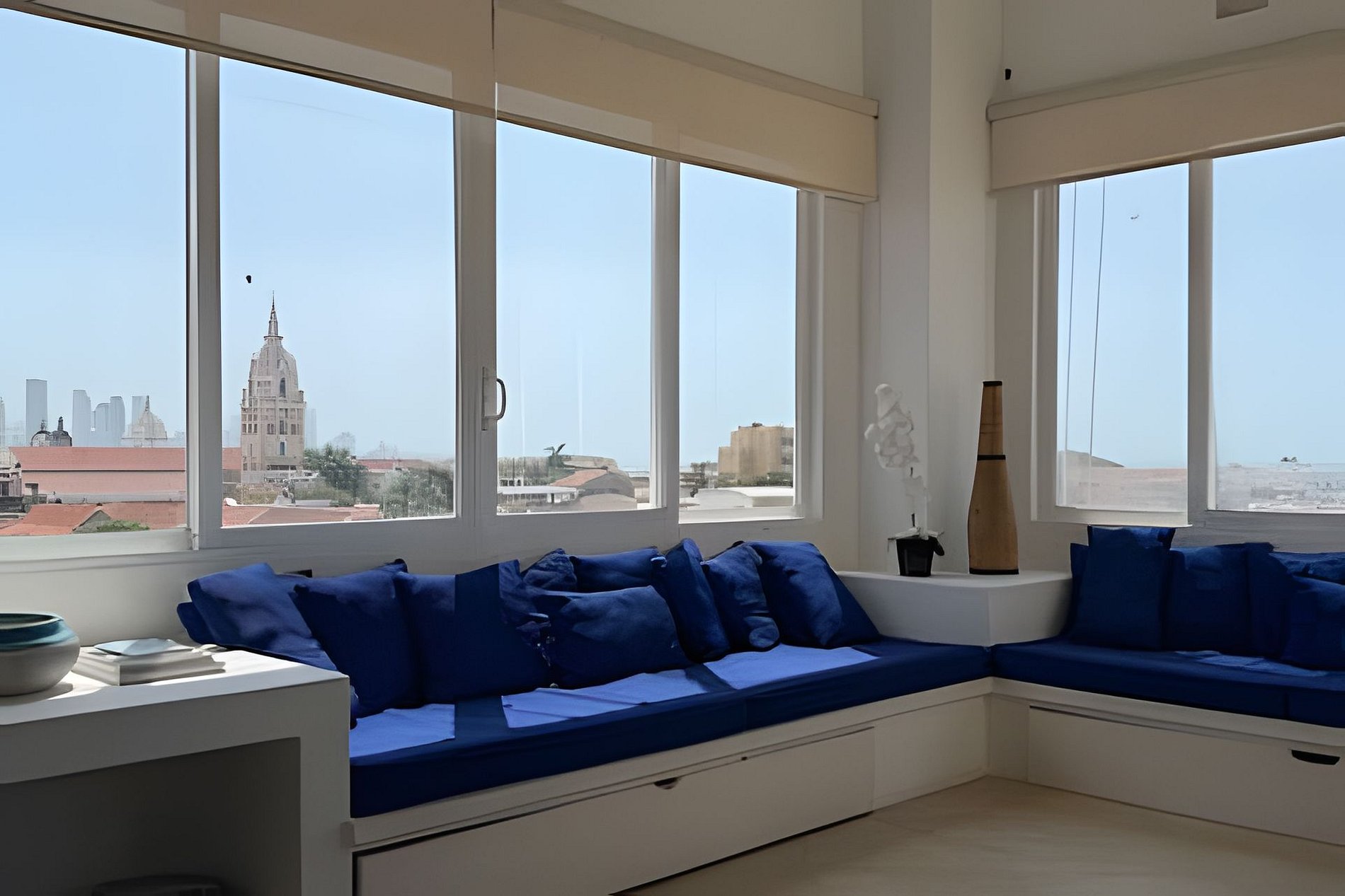 Disfruta de una experiencia única en este elegante apartamento de 1 habitación, ubicado en el histórico y emblemático Edificio Ganem. Perfectamente situado en el corazón de Cartagena, su ubicación es sencillamente inmejorable: en el corazón del Centro Histórico y rodeado de los mejores restaurantes, cafés y boutiques de la ciudad. Disfruta de su vista inigualable: desde sus ventanales podrás admirar el encanto colonial del Centro Histórico, con el azul infinito de Bocagrande como fondo.