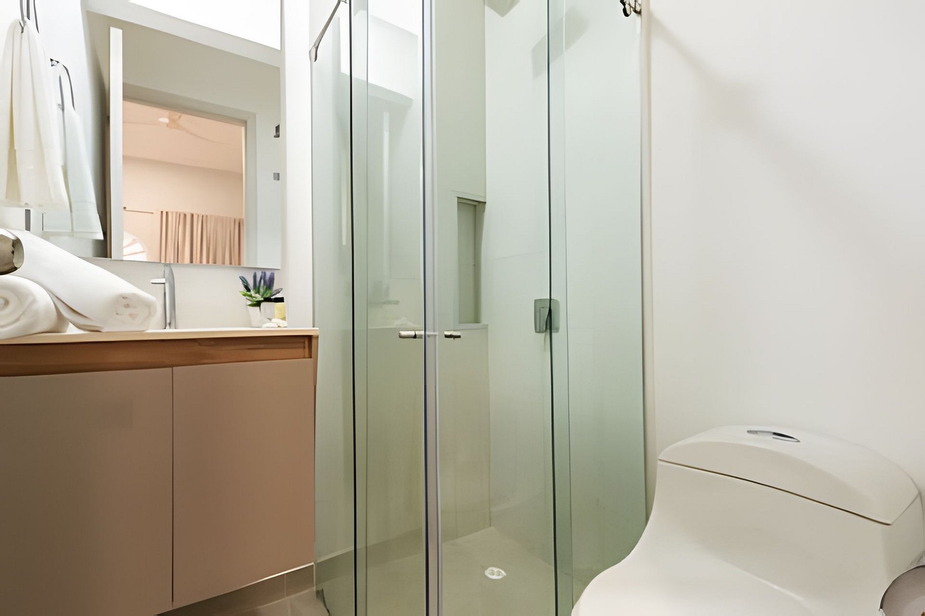 El apartamento es de 2 habitaciones y cuenta con capacidad de alojamiento para 7 personas. Está distribuido de la siguiente manera: Habitación principal: Cama king Aire acondicionado Smart TV Closet para almacenar ropa Habitación secundaria: Cama king Cama sencilla Aire acondicionado Smart TV Closet para almacenar ropa Sala de estar: 2 sofa cama para una persona cada uno Smart TV Baño Mesa de comedor de 4 puestos Cocina totalmente equipada El apartamento está en un 3er piso. Debes subir 3 pisos de escaleras para ingresar al apartamento.