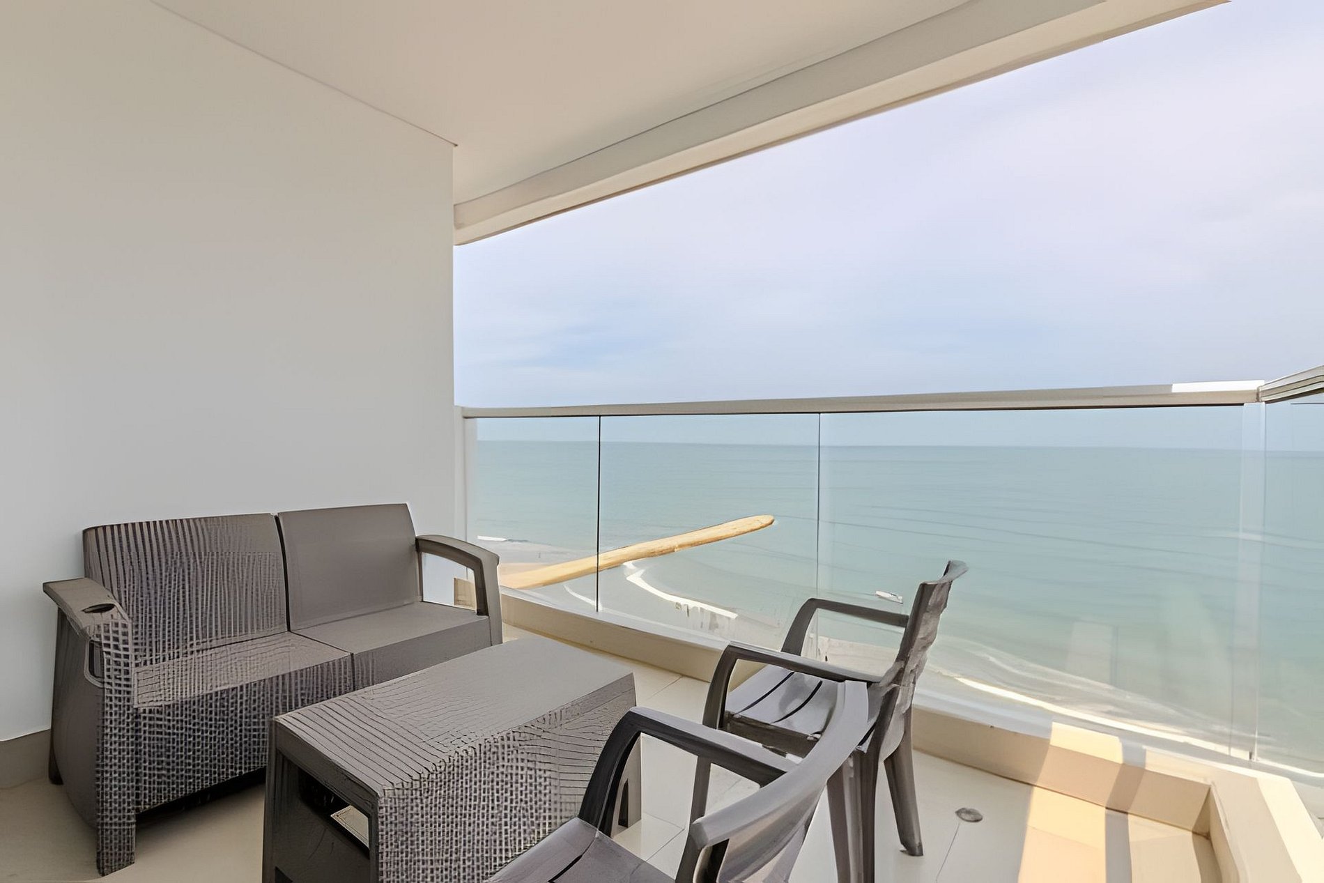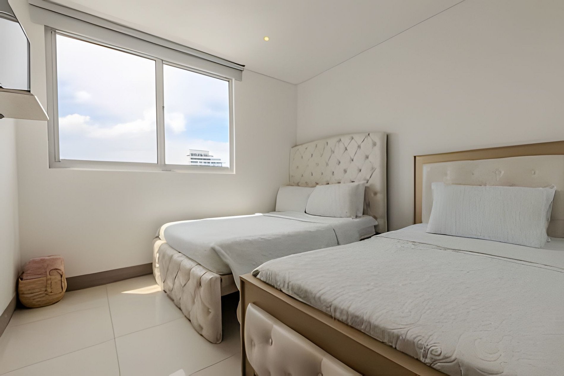 Este amplio y cómodo apartamento de 3 habitaciones está ubicado en el piso 12 del exclusivo edificio Palmetto Beach, justo frente a la playa. Su ubicación privilegiada ofrece vistas espectaculares al mar y al centro histórico de Cartagena. Ideal para familias o grupos, el apartamento cuenta con: Habitación principal con cama King Segunda habitación con dos camas dobles Tercera habitación con cama Queen Tres baños completos Cocina completamente equipada Balcón con vista panorámica Aire acondicionado en todas las áreas Disfruta de una estancia confortable, con todos los servicios necesarios para unas vacaciones inolvidables en una de las mejores zonas de la ciudad.