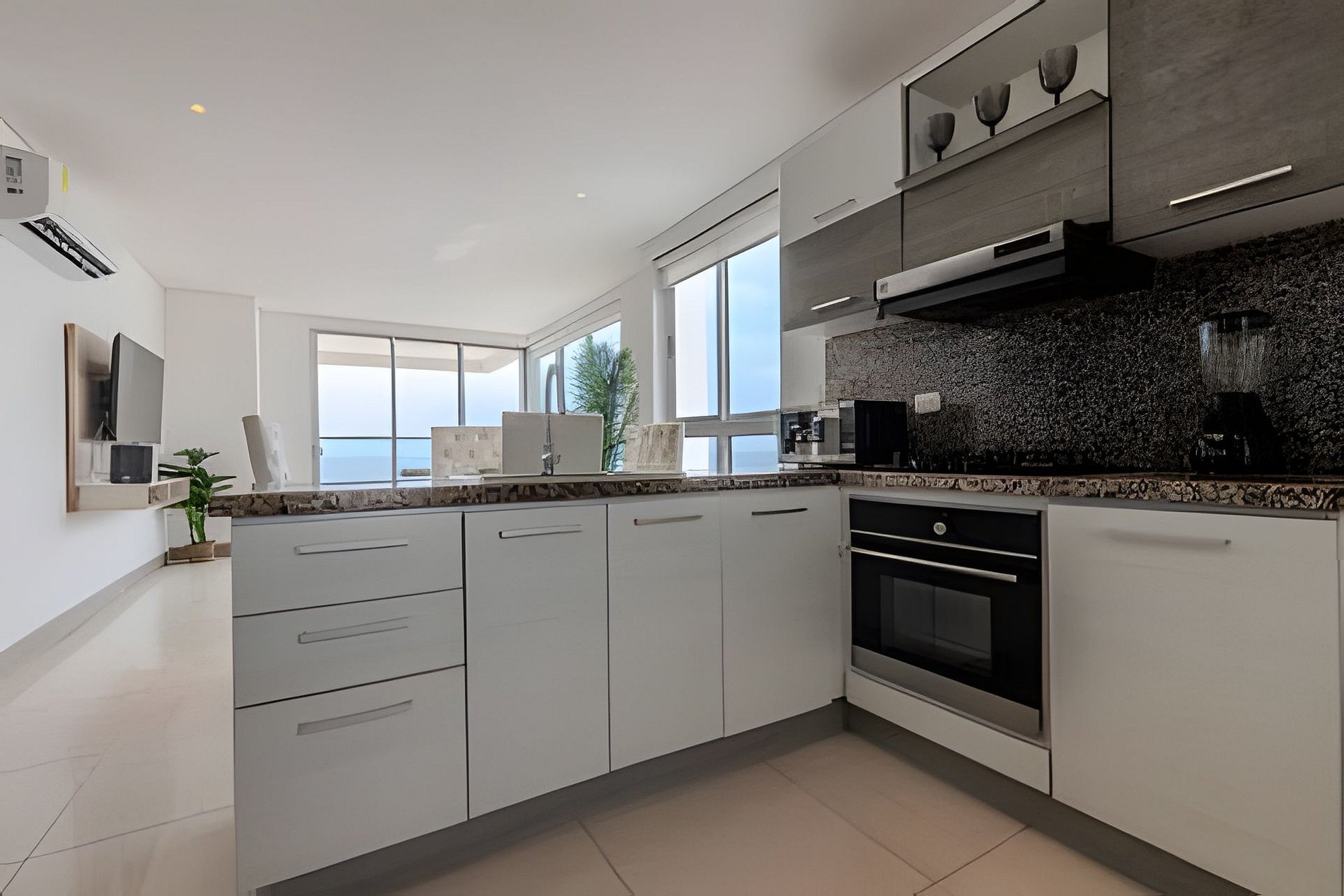 Tómese un descanso y relájese en este lujoso condominio frente al mar de 3 habitaciones, 3 baños y maravillosamente decorado, ubicado en el piso 12 de uno de los edificios más recientes y prestigiosos de Cartagena: Palmetto Beach. El apartamento tiene wi-fi de alta velocidad, tiene capacidad para 8 personas y es ideal para parejas, familias y grupos de amigos. Potente aire acondicionado y TV en cada habitación. ¡Siéntese y relájese en la piscina en el último piso con una vista panorámica!