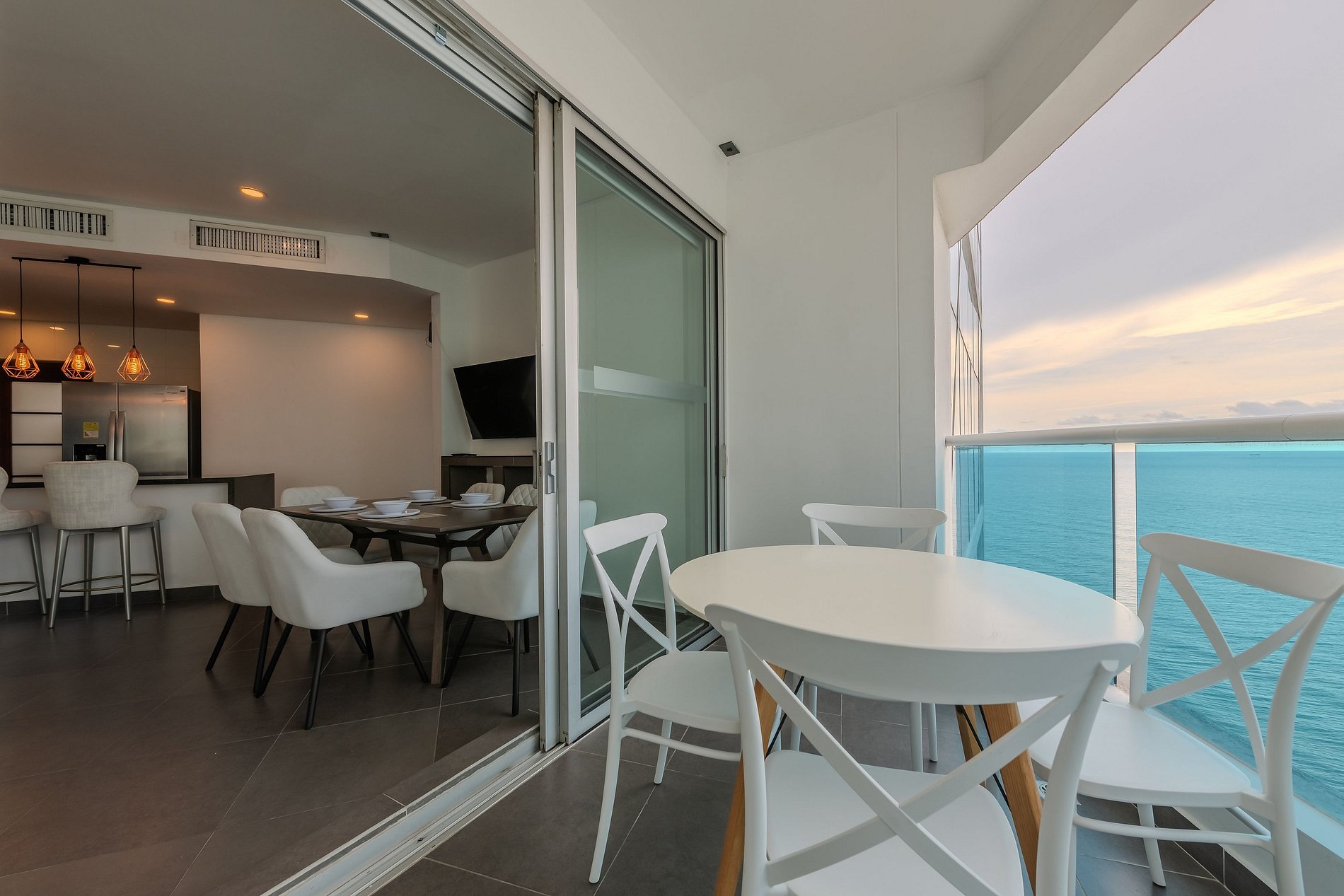 Este departamento de 3 dormitorios está en el piso 25 del edificio Infinito. Estarás en el corazón de Bocagrande, a pocos pasos de centros comerciales, restaurantes y las principales carreteras de la ciudad. El edificio tiene una piscina que puedes usar con tu grupo. El acceso al gimnasio y al baño de vapor es solo para los residentes del edificio. La sala de estar no tiene aire acondicionado. Solo abanicos.