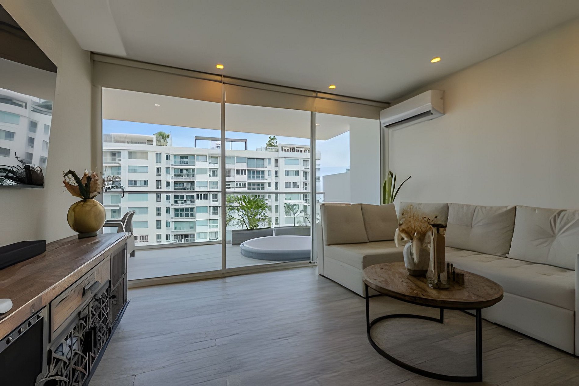 Bienvenido a nuestro encantador apartamento en el del barrio Cielomar, en Cartagena. Este luminoso y acogedor espacio es perfecto para aquellos que buscan una escapada tranquila cerca del mar Caribe. El apartamento cuenta con una soleada habitación equipada con una cómoda cama queen, donde podrás descansar plácidamente después de un día de exploración. En la sala de estar, encontrarás un sofá cama que se convierte en una cómoda cama para dos personas, junto con una Smart TV para relajarte viendo tus programas favoritos. Una de las joyas de este espacio es el jacuzzi privado en el balcón, donde podrás sumergirte y disfrutar de un momento de paz y tranquilidad mientras contemplas las vistas del vecindario. Ya sea que viajes en pareja o en familia pequeña, este espacio ofrece todo lo que necesitas para una estancia cómoda y memorable en Cartagena. ¡Te esperamos con los brazos abiertos!