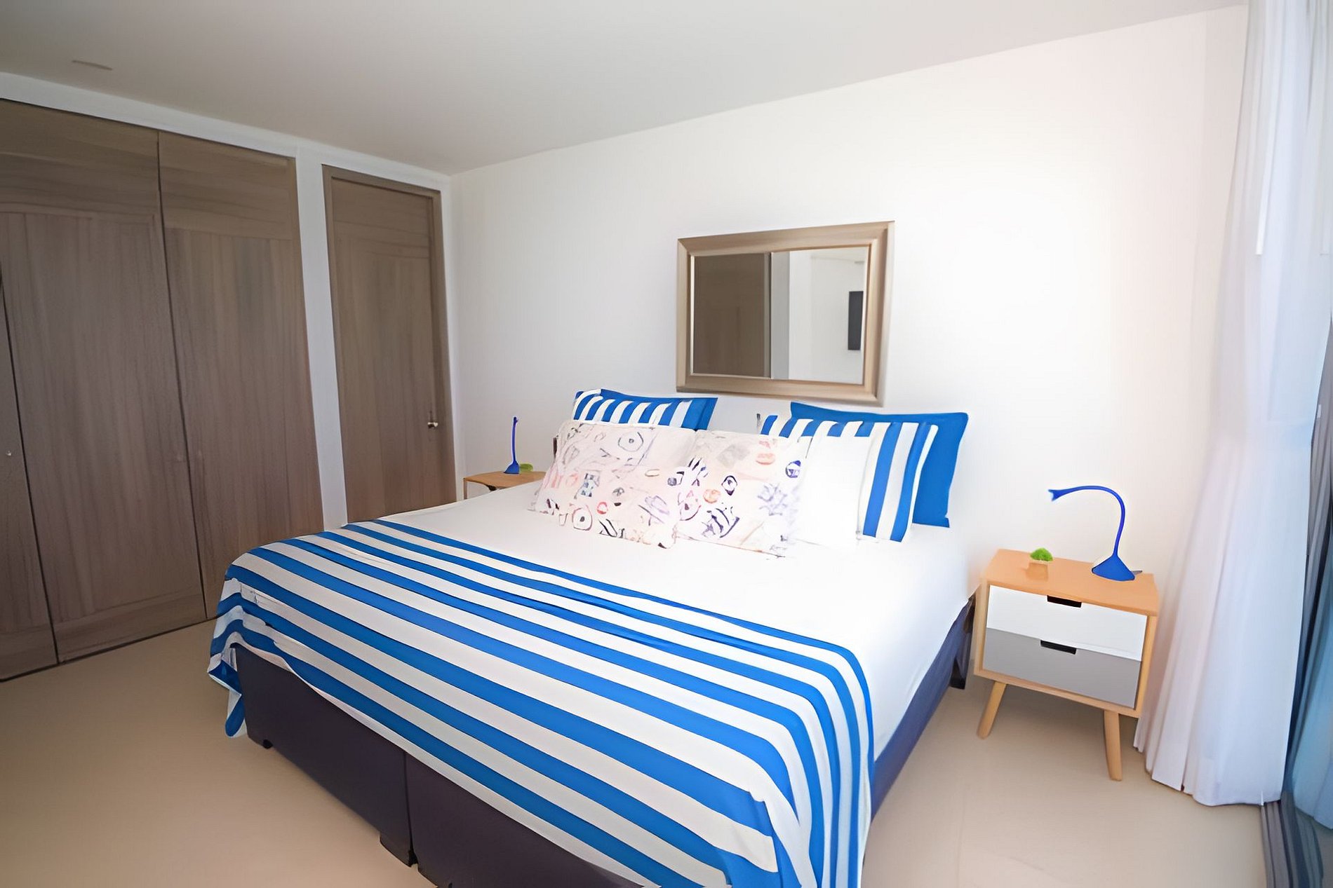 Experimente el lujo en uno de los edificios más elegantes y mejor ubicados de Cartagena. Todo en este apartamento es completamente nuevo y está diseñado para garantizar una estadía cómoda, moderna e inolvidable. Disfrute de amplias habitaciones, decoración sofisticada y hermosas vistas al mar desde diferentes áreas de la casa. Habitación principal - Cama king size (convertible en dos camas individuales) - Aire acondicionado - Baño privado - Armario privado - Smart TV - Acceso directo al balcón con vista al mar Habitación 2 - Cama king size (convertible en dos camas individuales) - Aire acondicionado - Baño privado - Armario privado - Smart TV - Acceso al balcón con vista al mar Sala de estar - Smart TV - Sofá cama queen size, muy cómodo para dos personas - Acceso al balcón - Cocina americana totalmente equipada - Baño de visitas con ducha Este apartamento es ideal para familias, parejas o grupos que buscan comodidad, estilo y una ubicación privilegiada. ¡Le encantará hospedarse aquí!