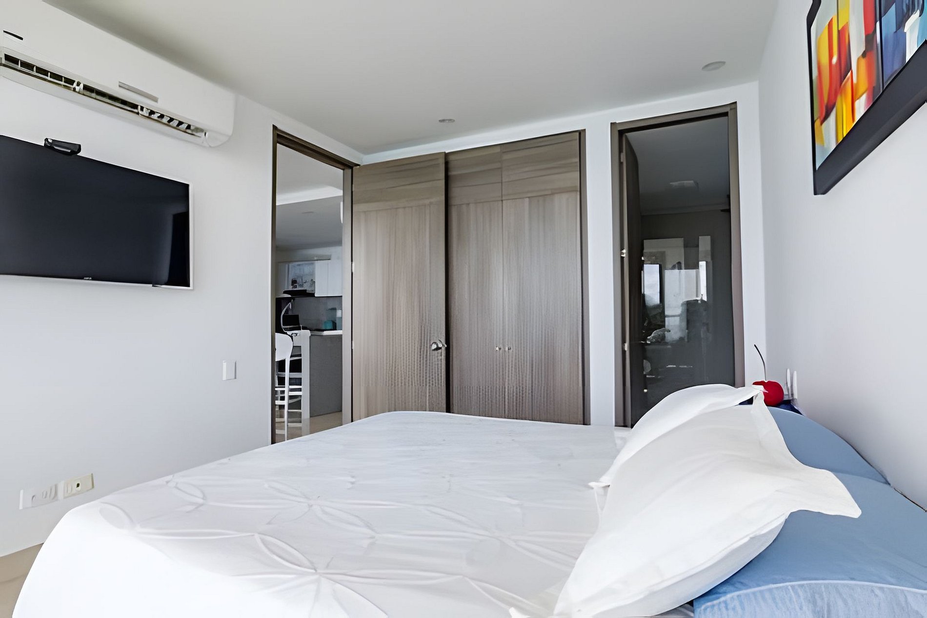 Apartamento de 2 habitaciones y 3 baños perfecto para su estadía en Cartagena. Cuenta con una cama queen en la habitación principal, dos cama sencillas en la segunda habitación con camas retractables debajo de ellas. Está equipado completamente para ofrecerles todas las comodidades que usted requiere en su estadía. Está a solo 8-10 minutos en taxi del centro amurallado y se encuentra en uno de los barrios más reconocidos de Cartagena. Apto para 1-6 personas máximo.