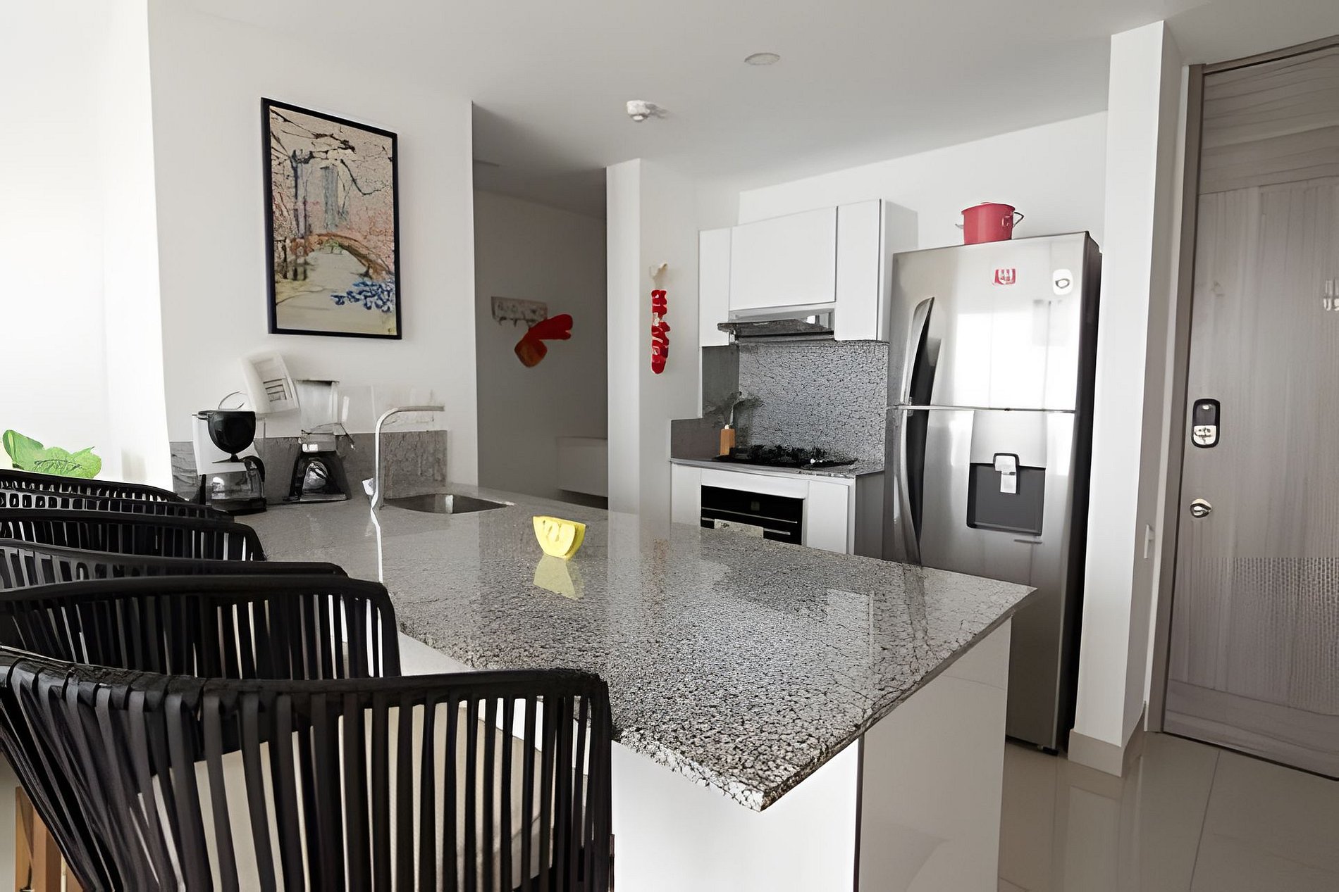Al registrarse le colocarán una manilla que deben usar durante su estadía. Es una manera de que el edificio pueda saber quien está hospedado en el apartamento. Pueden entrar en la piscina y gimnasio en el piso S y al apartamento. También tienen acceso a un parqueadero.