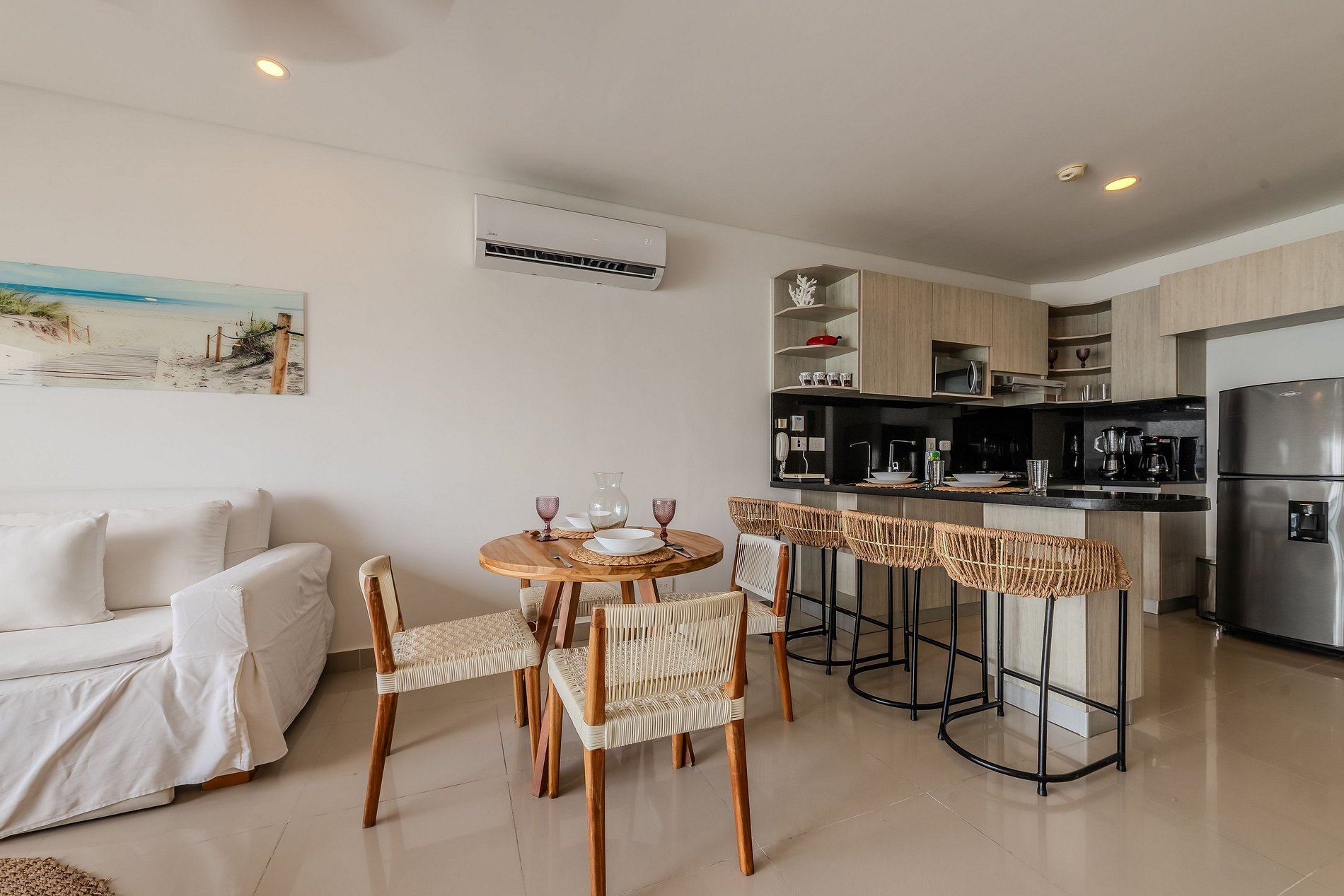 Apartamento de 1 habitación perfecto para su estadía en Cartagena. Cuenta con dos camas sencillas en la habitación principal (Juntas son una cama king) y dos sofa camas en la sala. Está equipado completamente para ofrecerles todas las comodidades que usted requiere en su estadía. Está a solo 5 minutos en taxi del centro amurallado y se encuentra en uno de los barrios más reconocidos de Cartagena. Apto para 1-4 personas máximo.