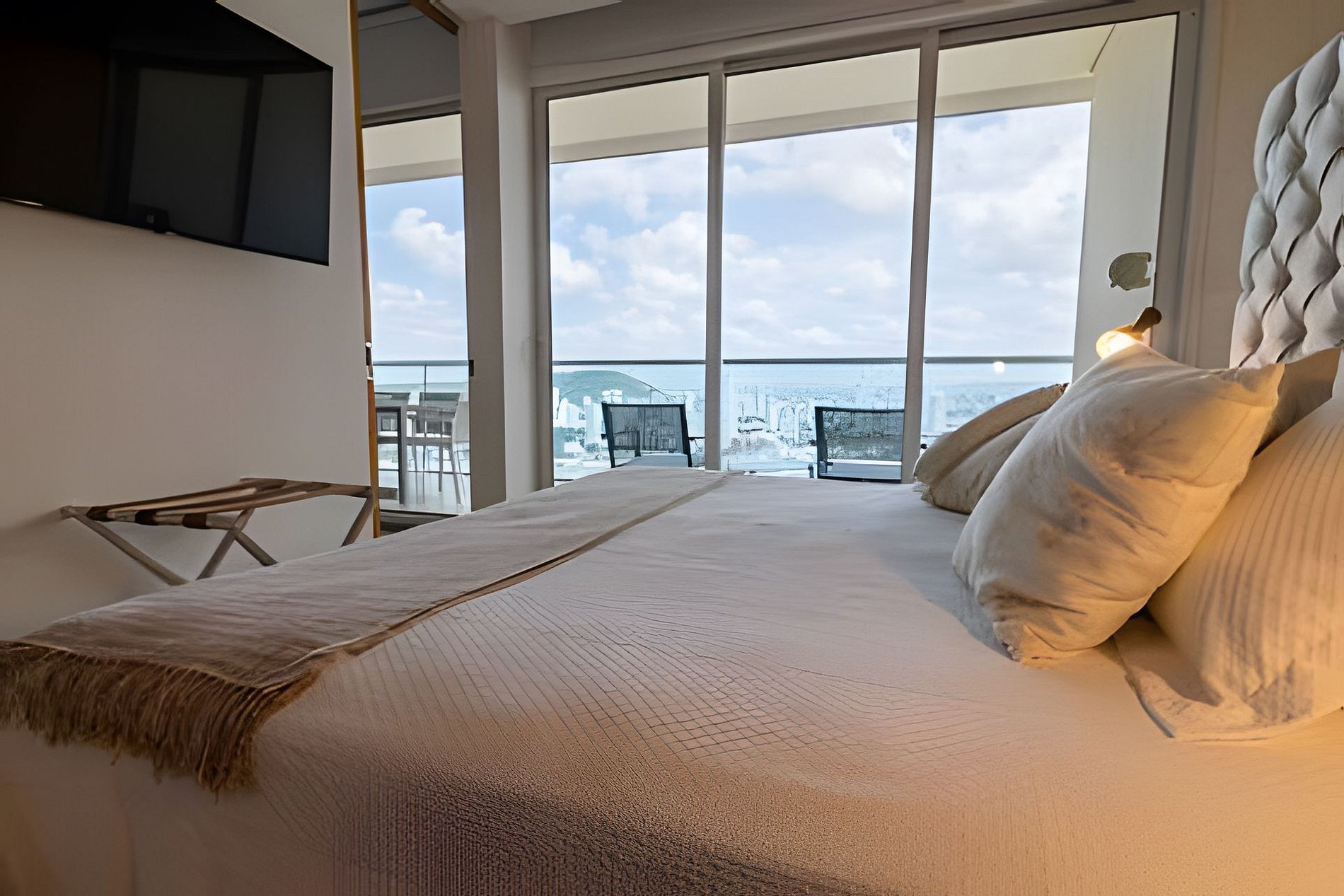 Bienvenidos a este exclusivo apartamento en el piso 23 del edificio H2 en Bocagrande, con una vista espectacular a la bahía de Cartagena. El espacio está diseñado para ofrecer máximo confort y lujo, con todo lo que necesitas para una estadía inolvidable. Además, en caso de que lo requieran contarán con servicio de empleada que realizará el aseo y, si lo deseas, podrá cocinarte por un costo adicional. Ana, nuestra anfitriona en el apartamento, es increíble y hará que tu experiencia sea aún mejor.