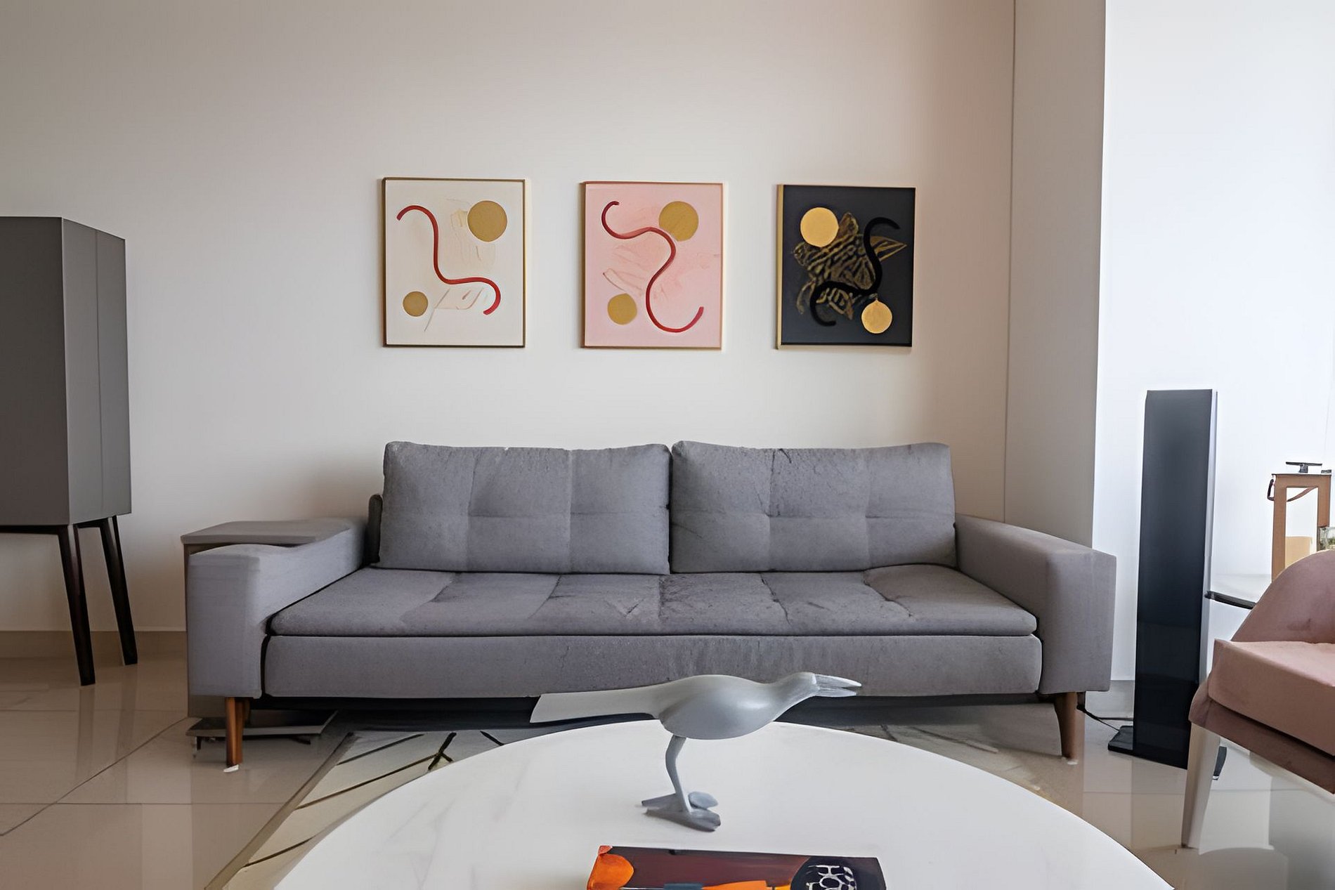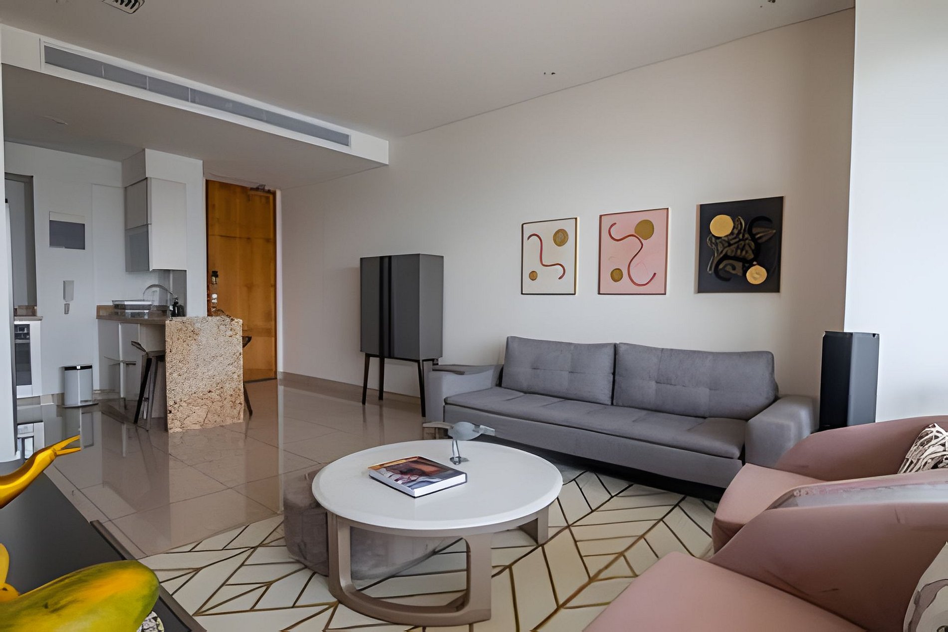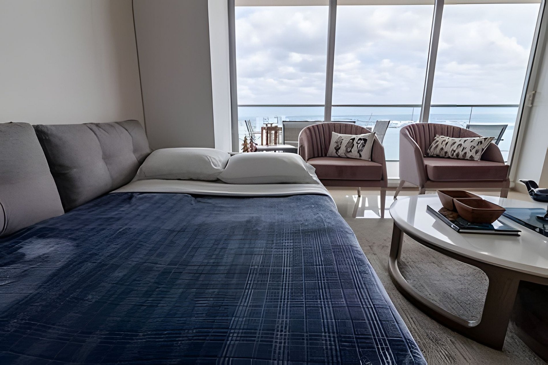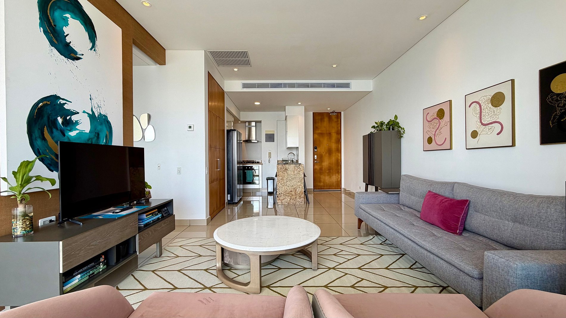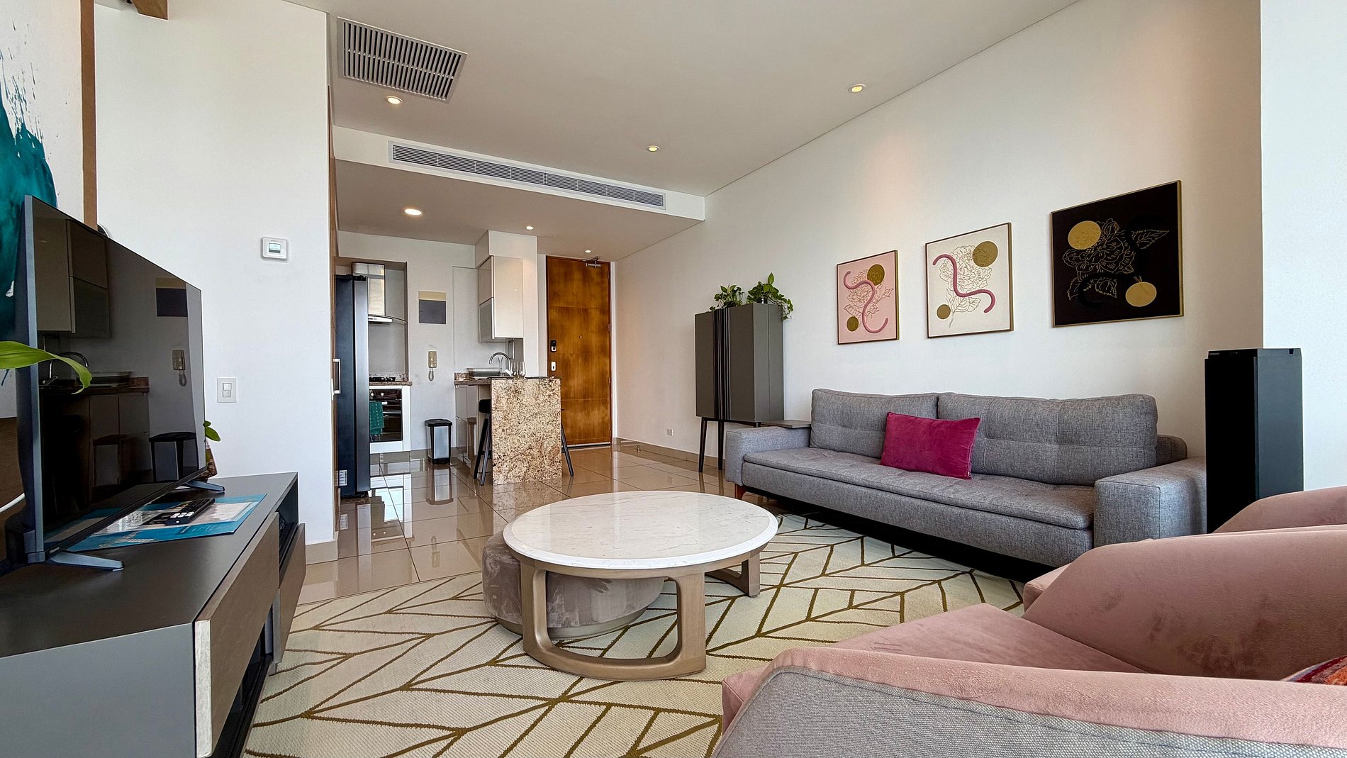 Sala de estar: Sofá cama ideal para huéspedes adicionales Acceso al balcón con vistas impresionantes Decoración moderna y de alto nivel
