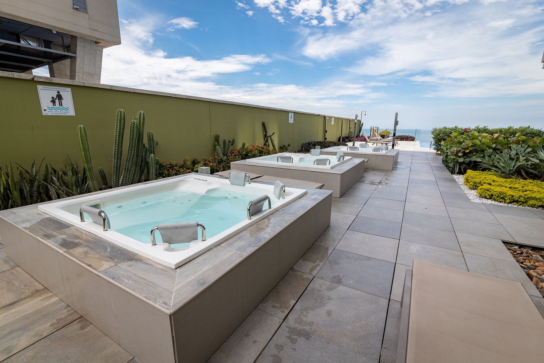 Piscina infinita con vista a la bahía Jacuzzi para relajarte después de un día de exploración.