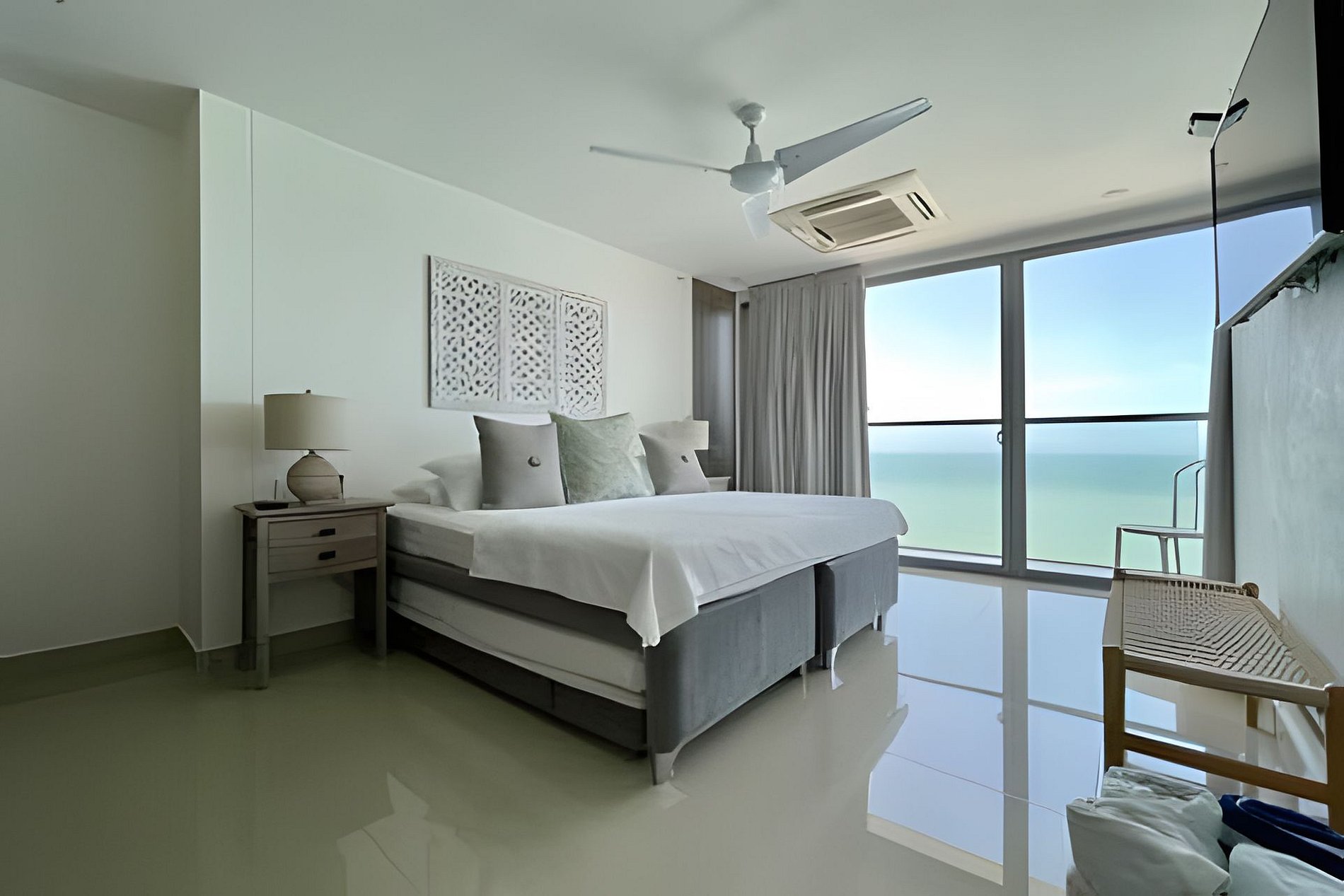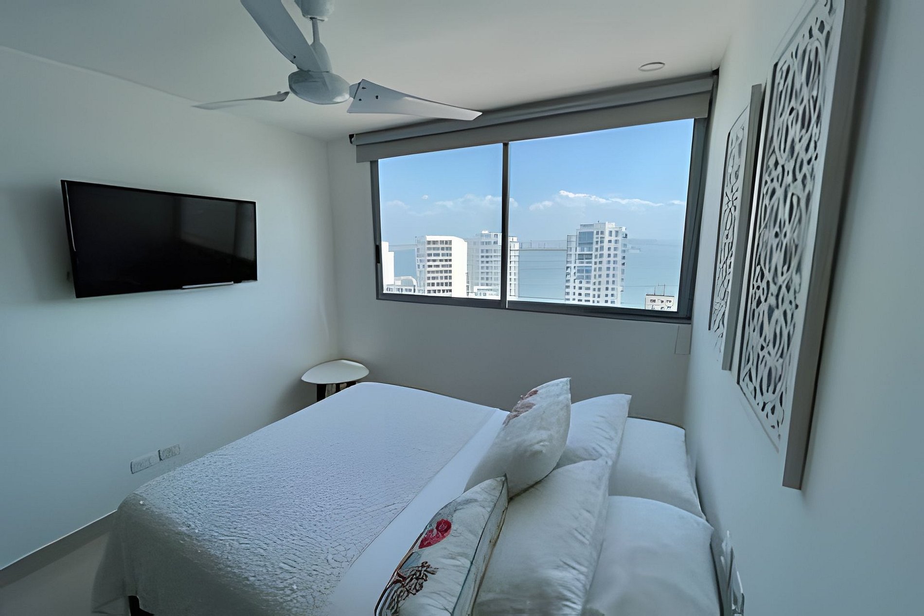 Un apartamento muy elegante, cuidadosamente decorado para hacer un ambiente único e irremplazable en la hermosa ciudad de Cartagena. Cuenta con televisores en cada cuarto y uno en la sala. Internet de alta velocidad para que puedan trabajar desde el apartamento. Brindamos toallas para cada huésped y la cocina está totalmente dotada para cocinar lo que desean. El apartamento tiene lavadora y secadora en caso de que necesiten utilizarlo. Tiene una espectacular vista al mar y el centro histórico que se encuentra a tan solo unos minutos del edificio. No se arrepentirán de quedarse en uno de las mejores ubicaciones que pueden seleccionar en Cartagena.