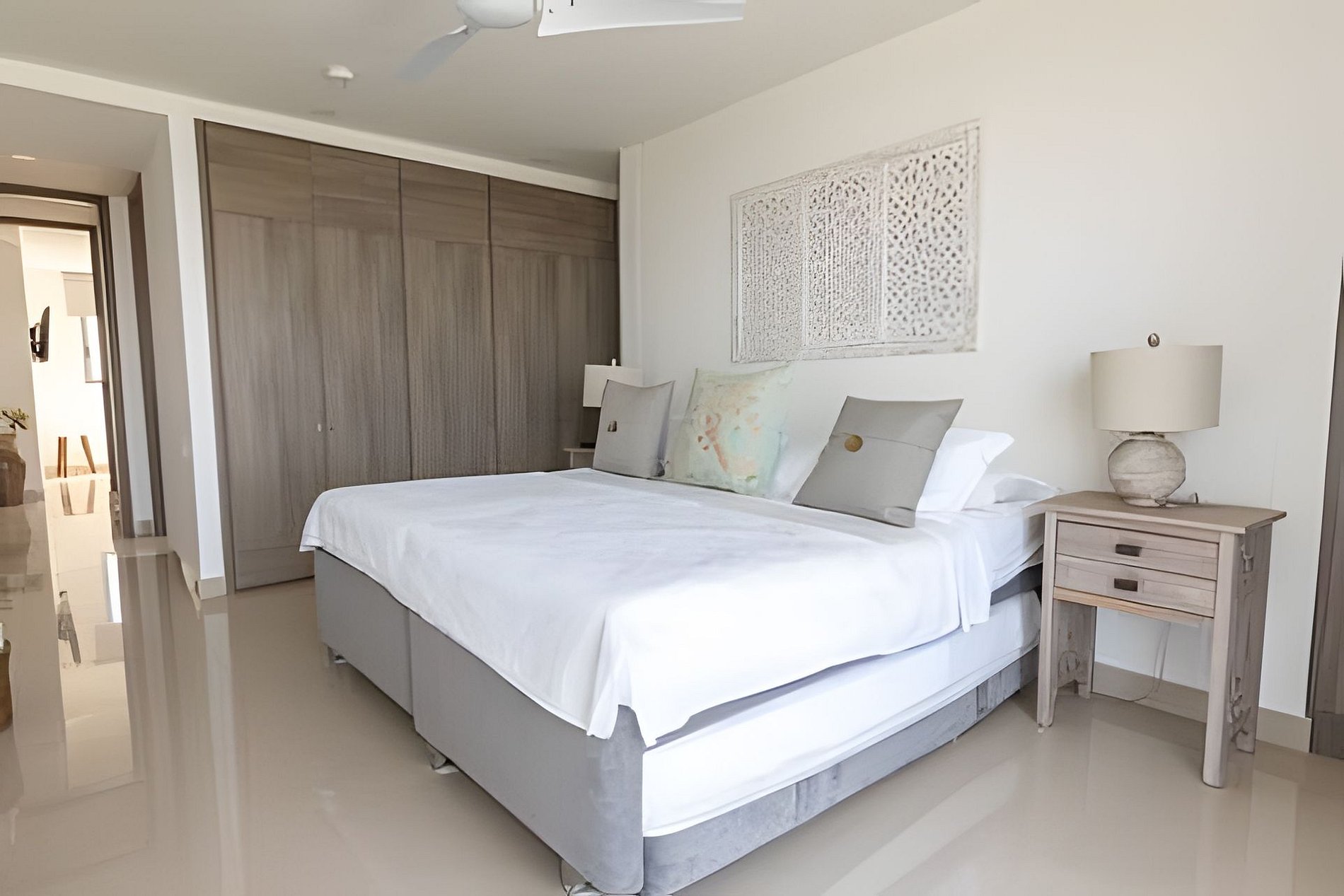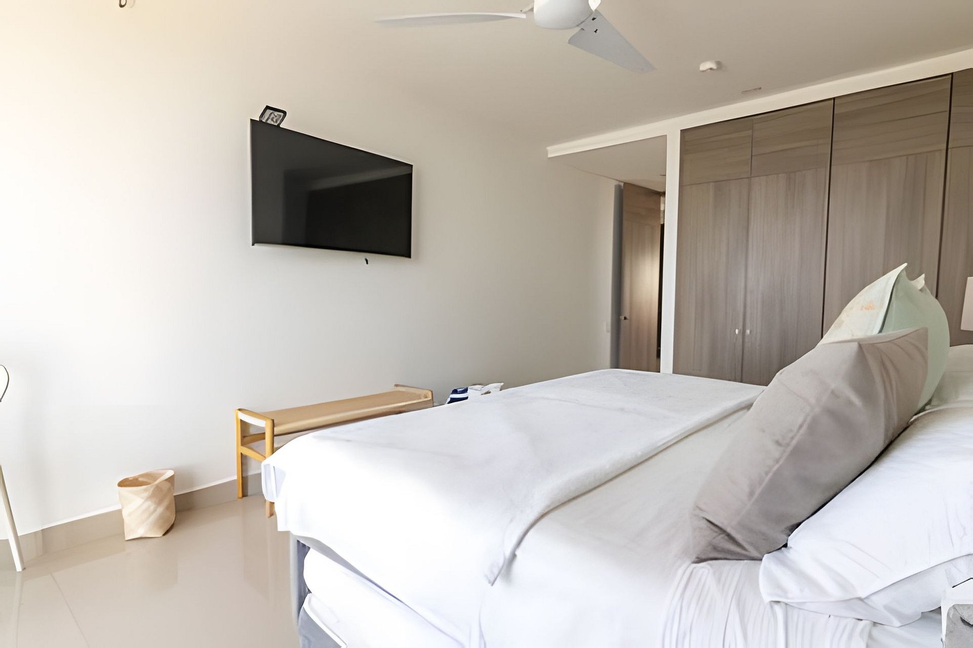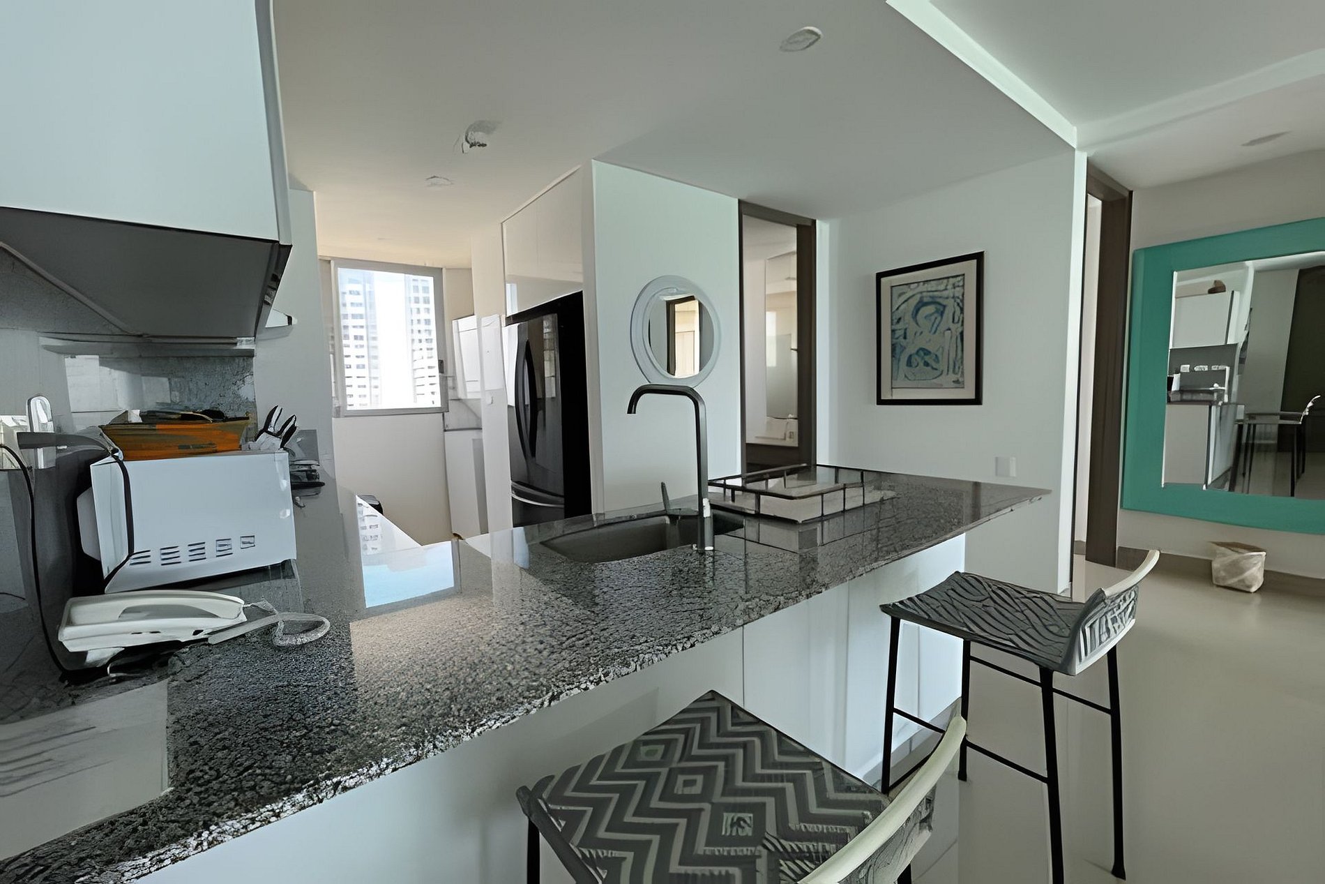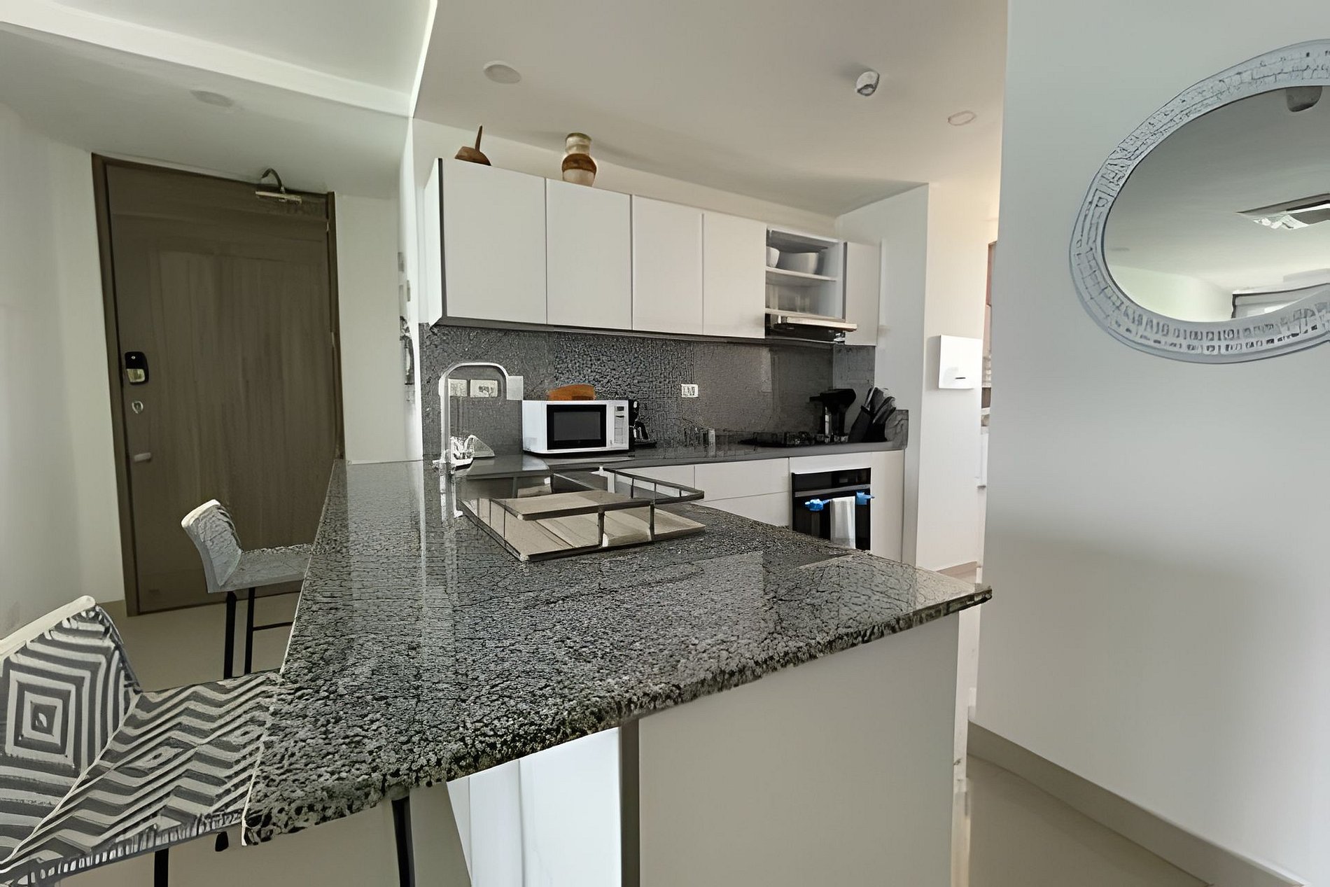 Lujoso apartamento de 2 habitaciones y 2 baños perfecto para su estadía en Cartagena. Cuenta con una cama king en la habitación principal y dos sencillas y una cama queen en la segunda habitación con una sencilla. Está equipado completamente para ofrecerles todas las comodidades que ustedes requieren. Está a solo 5-8 minutos en taxi del centro amurallado y se encuentra en uno de los barrios más reconocidos de Cartagena. En taxi queda a 10-15 minutos del aeropuerto. Apto para 1-4 personas máximo.