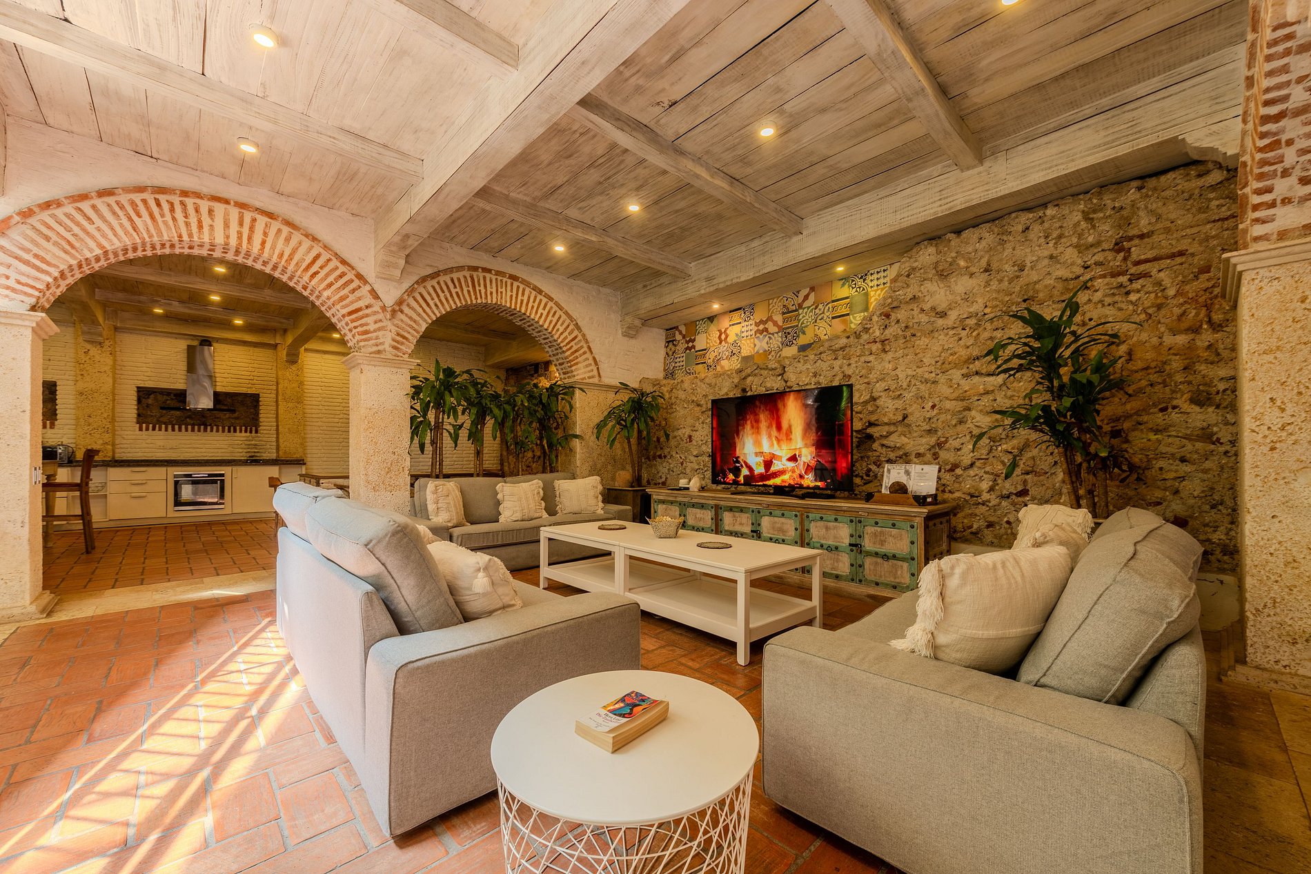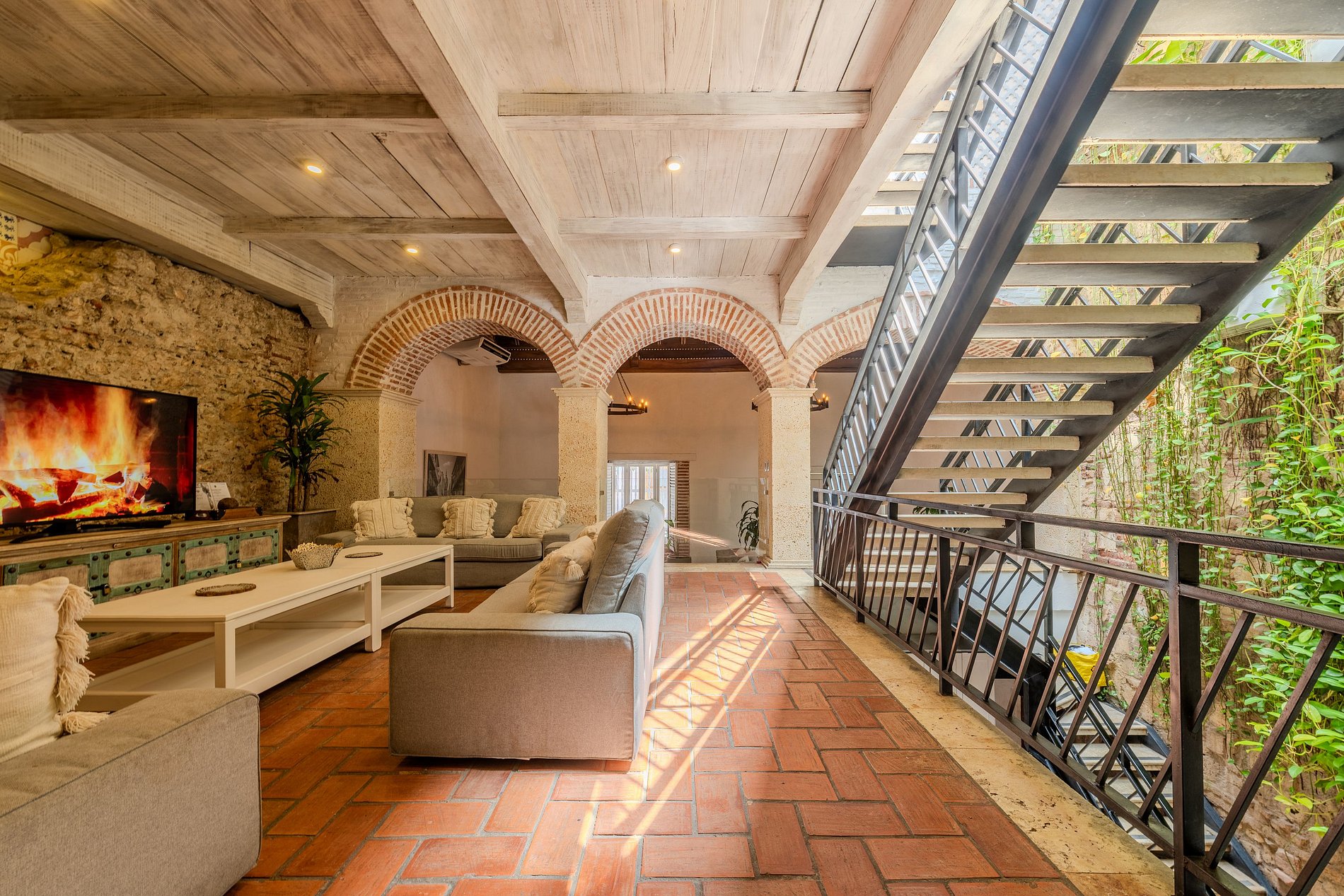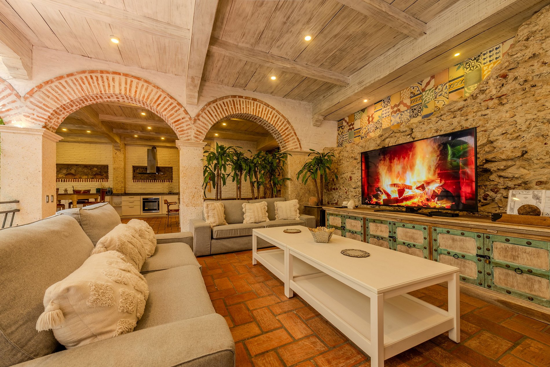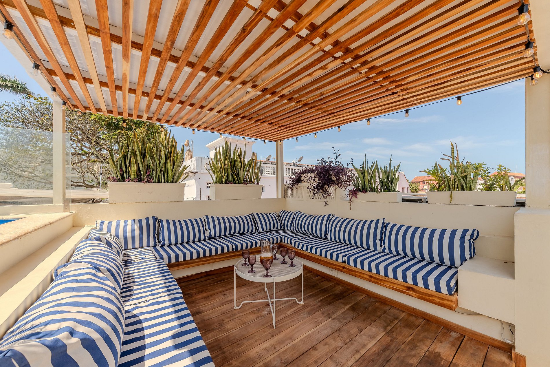 Increíble casa en el centro histórico de la ciudad con 5 dormitorios recientemente renovada con piscina en la terraza del último piso y diseño colonial. La casa tiene 5 habitaciones y 5,5 baños. Cada habitación tiene su baño personal y hay un baño social en la cocina. Cada dormitorio tiene camas king size y hasta 16 personas pueden permanecer cómodamente en la casa. La casa está conformada por 3 pisos y el último piso terraza donde podrá disfrutar de su propia piscina privada. Segunda planta: Dormitorio 1: - 1 cama King - 1 cama individual - 3 personas - Baño personal - Smart TV Dormitorio 2: - 1 cama King - 1 sofá grande - 3 personas - Baño personal - Smart TV Dormitorio 3: - 1 cama King - 1 cama individual - 3 personas - Baño personal - Smart TV Piso medio: - Cocina - Comedor - 2 salones - Smart TV Planta baja: Dormitorio 4: - 1 cama King - 2 personas - Baño personal - Smart TV Dormitorio 5: - 1 cama King - 4 camas individuales - 6 personas - Baño personal - Smart TV Tercer Piso (Piscina y Terraza): La terraza del piso superior es donde pasarán sus tardes, disfrutando de la piscina privada con una espectacular vista de la Ciudad Amurallada.