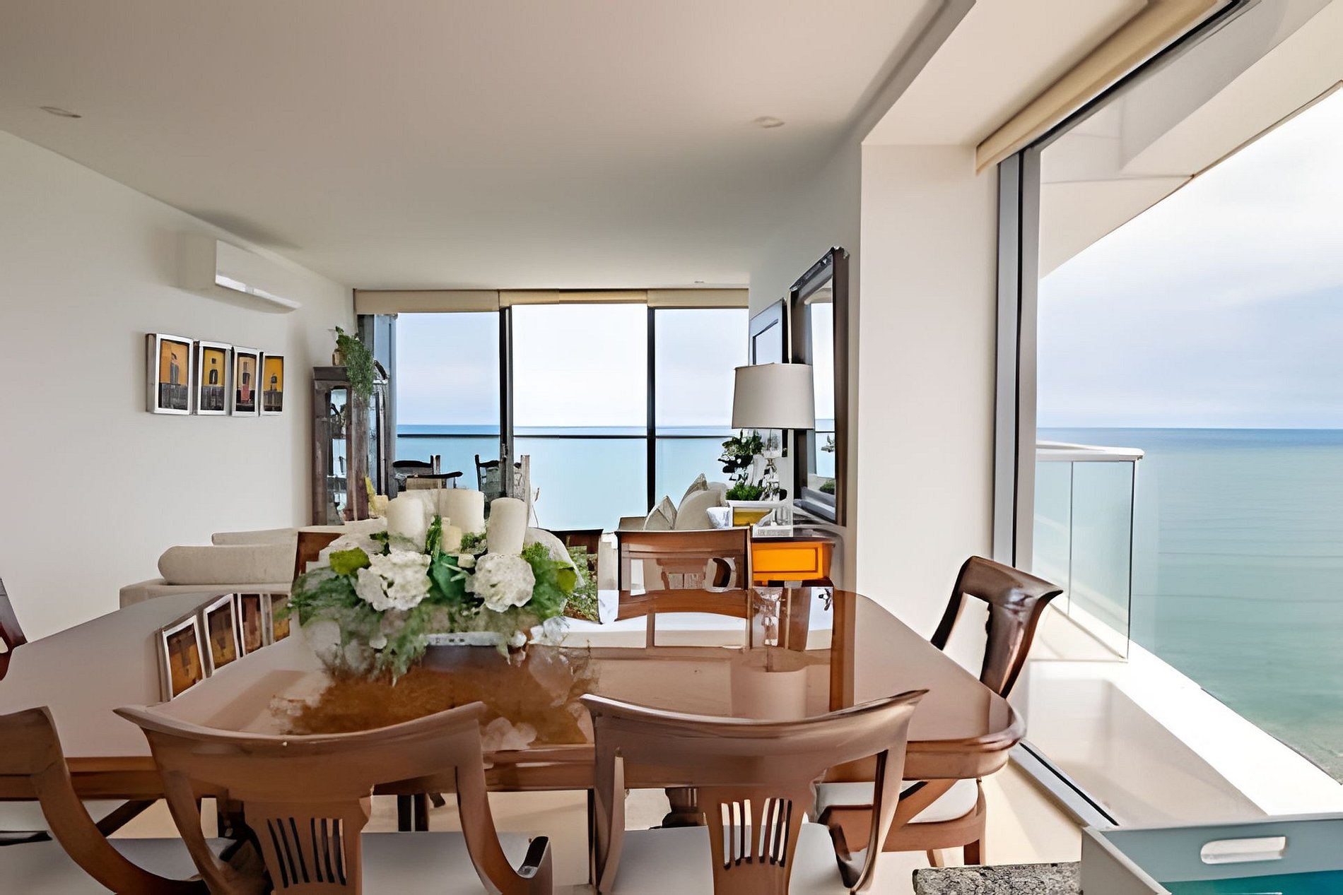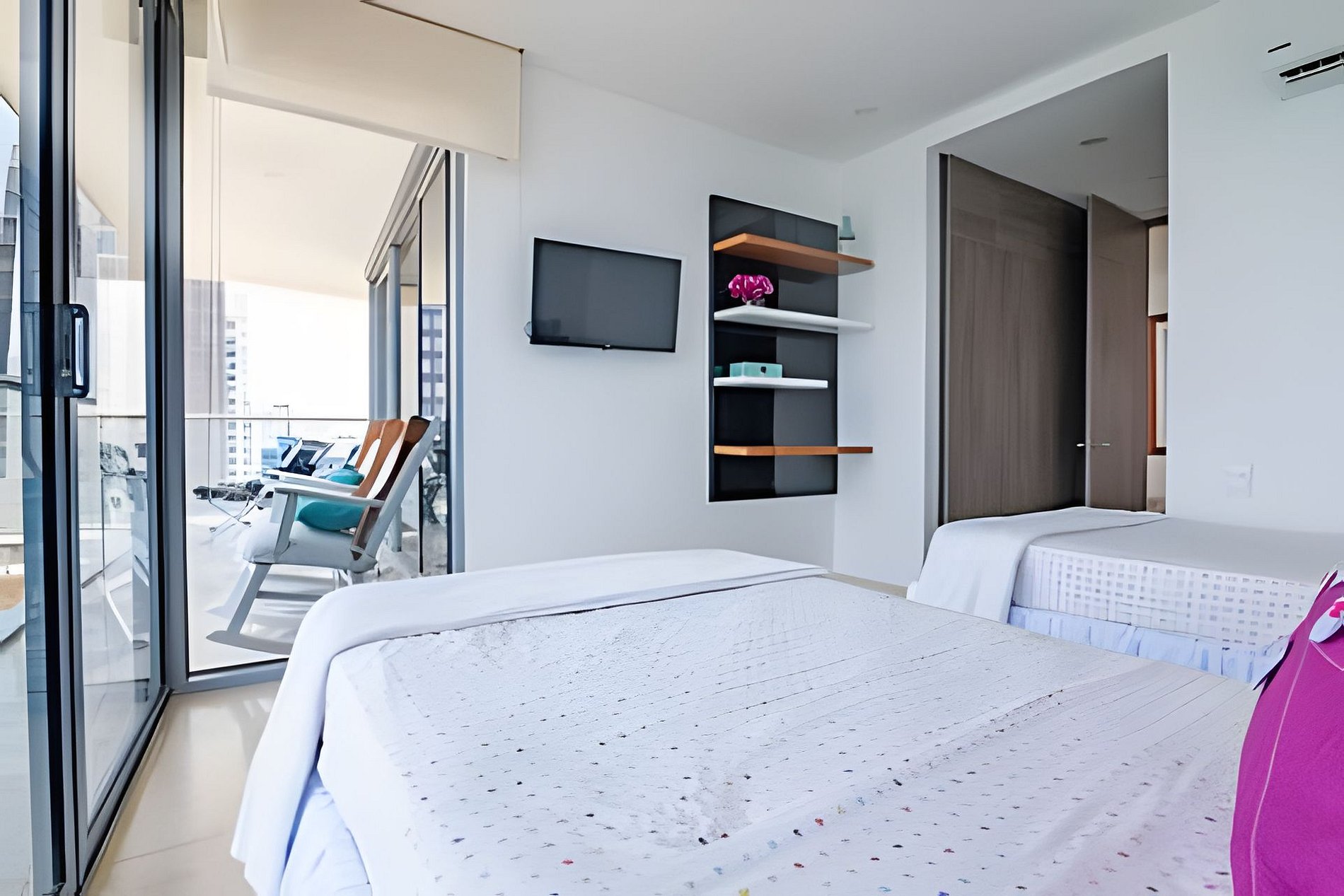 Espectacular apartamento en el piso 17 de uno de los edificios más nuevos y prestigiosos de Cartagena. Amplia sala de estar, 3 baños, cocina y un gran balcón con una vista espectacular de casi 360 grados sobre el océano y el centro de la ciudad. Perfecto para vacaciones en familia o con amigos o un viaje de negocios. Apt es adecuado para 1 - 6 personas como máximo. Hay una cama queen en el dormitorio principal y dos camas individuales en el segundo y tercer dormitorio. ¡Espero recibirte!