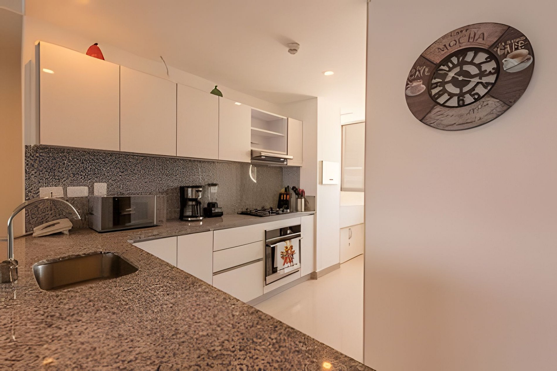 Lujoso apartamento de 2 habitaciones y 2 baños perfecto para su estadía en Cartagena. Cuenta con una cama king en la habitación principal, cuatro camas sencillas en la segunda habitación. Está equipado completamente para ofrecerles todas las comodidades que usted requiere en su estadía. Está a solo 5-8 minutos en taxi del centro amurallado y se encuentra en uno de los barrios más reconocidos de Cartagena. En taxi queda a 10-15 minutos del aeropuerto. Apto para 1-6 personas máximo.
