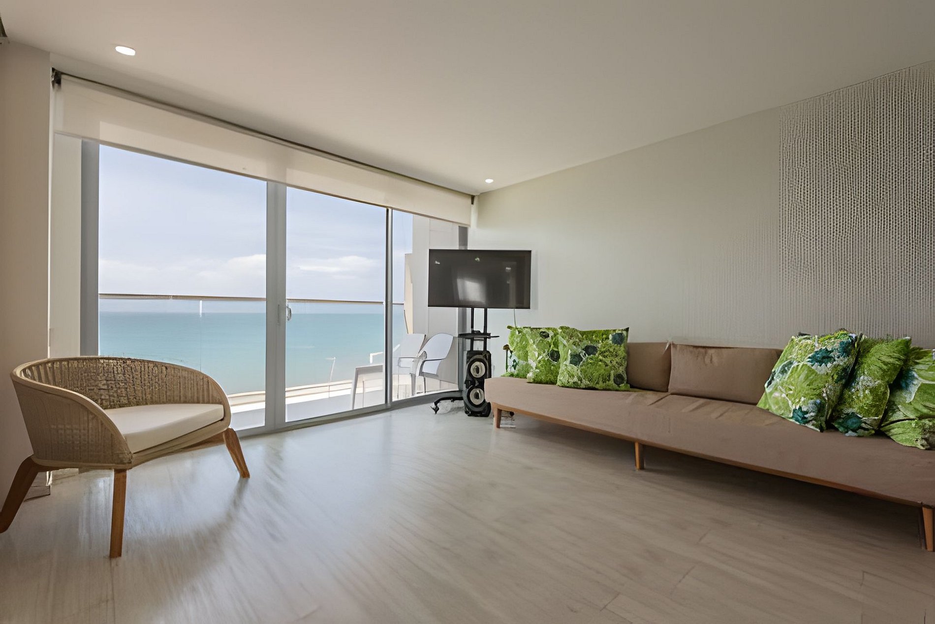 Un apartamento muy elegante, cuidadosamente decorado para hacer un ambiente único e irremplazable en la hermosa ciudad de Cartagena. Cuenta con todos los implementos seleccionados en el listado. Disfruta de Cartagena con estilo, en este apartamento rediseñado para darte una comodidad de lujo. Habitación 1: Cama King Cama queen debajo de la cama king Baño privado Vista al mar Closet Acceso al balcón. Habitación 2: Cama queen Cama doble debajo de la cama queen Closet Vista a la bahía Smart TV Tiene internet de alta velocidad y Smart TV para que el grupo pueda disfrutar. Tiene una vista inigualable sobre Cartagena desde un piso 15. ¡Les encantará este apartamento!