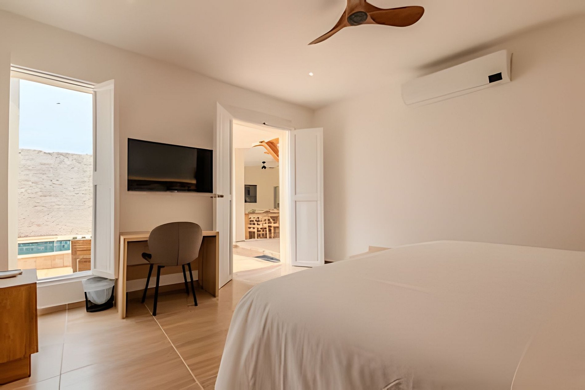 Bienvenidos a una experiencia de lujo inigualable en el corazón vibrante de Getsemaní, el barrio más encantador y artístico de Cartagena. A tan solo unos pasos de la emblemática Plaza de la Trinidad, esta espectacular casa ha sido diseñada para quienes buscan lo mejor en confort, estilo y servicio personalizado. La propiedad cuenta con 5 habitaciones amplias y refinadas, cada una equipada con aire acondicionado, Smart TV, caja fuerte, closet, baño privado con agua caliente y camas auxiliares discretamente guardadas para acomodar con elegancia grupos grandes sin sacrificar espacio ni estética. Las habitaciones principales ofrecen camas king y queen, con detalles que mezclan lo colonial y lo contemporáneo en perfecta armonía. En el primer piso, lo recibe una piscina rodeada de arquitectura local cuidadosamente restaurada, perfecta para refrescarse en un ambiente de total privacidad. En el corazón de la casa se encuentra la sala-comedor, decorada con toques cálidos y sofisticados, y una cocina completamente equipada donde nuestra empleada—incluida durante su estadía—prepara deliciosos desayunos y platos típicos a solicitud. Suba a la terraza del tercer piso y descubra un auténtico santuario urbano: un jacuzzi privado con vistas panorámicas sobre los coloridos techos de Getsemaní, un comedor al aire libre para cenas memorables bajo las estrellas, y un asador perfecto para tardes de BBQ y buena compañía. Pensando en su seguridad y comodidad, también contará con personal nocturno que cuida la casa mientras usted descansa o disfruta de la ciudad. Cada rincón de esta casa ha sido pensado para ofrecer una estadía que combine lujo, historia y hospitalidad caribeña de alto nivel. Ideal para familias, grupos de amigos o celebraciones especiales, es el punto de partida perfecto para explorar Cartagena con estilo. Viva la experiencia de un hotel boutique 5 estrellas con la privacidad, calidez y autenticidad de una casa única en una de las zonas más icónicas de América Latina. ¡Le esperamos para hacer de su viaje algo realmente inolvidable!