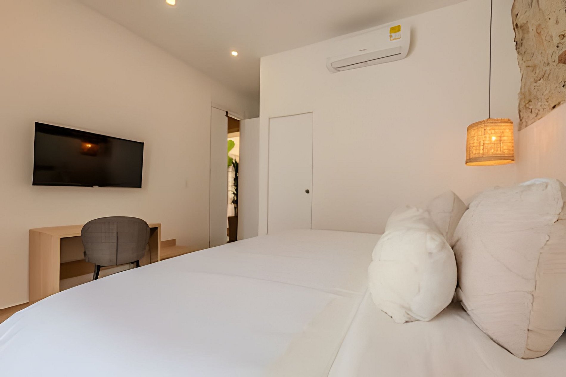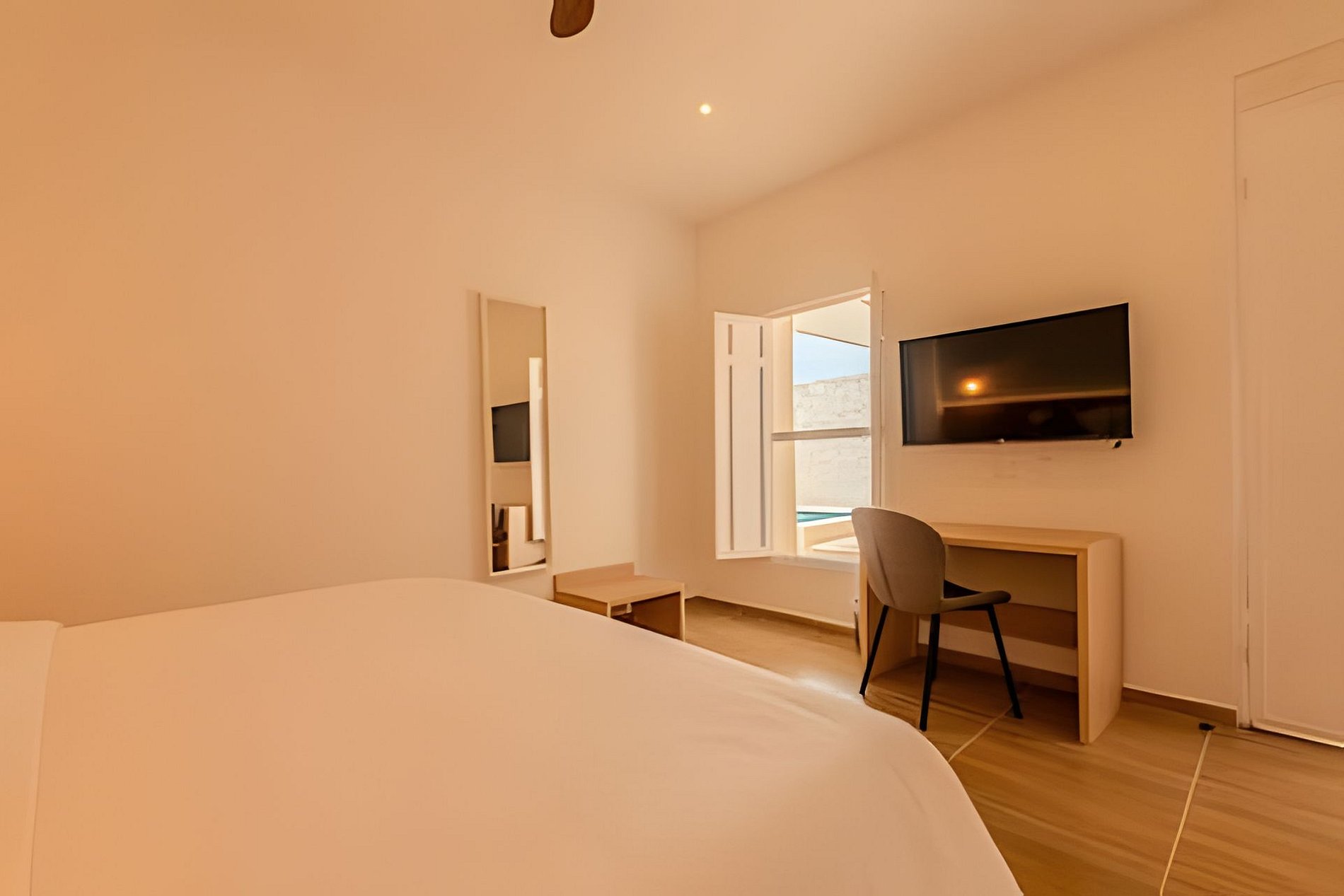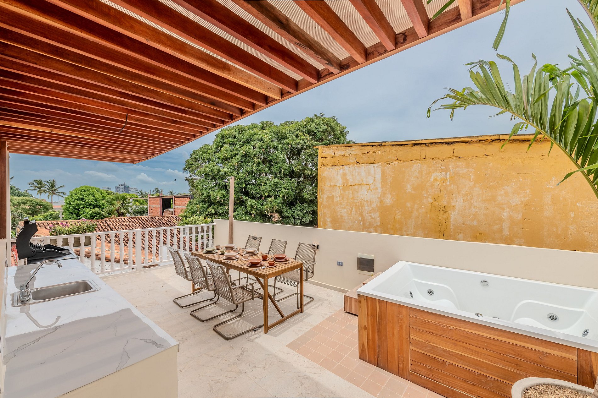 Bienvenidos a una experiencia de lujo inigualable en el corazón vibrante de Getsemaní, el barrio más encantador y artístico de Cartagena. A tan solo unos pasos de la emblemática Plaza de la Trinidad, esta espectacular casa ha sido diseñada para quienes buscan lo mejor en confort, estilo y servicio personalizado. La propiedad cuenta con 5 habitaciones amplias y refinadas, cada una equipada con aire acondicionado, Smart TV, caja fuerte, closet, baño privado con agua caliente y camas auxiliares discretamente guardadas para acomodar con elegancia grupos grandes sin sacrificar espacio ni estética. Las habitaciones principales ofrecen camas king y queen, con detalles que mezclan lo colonial y lo contemporáneo en perfecta armonía. En el primer piso, lo recibe una piscina rodeada de arquitectura local cuidadosamente restaurada, perfecta para refrescarse en un ambiente de total privacidad. En el corazón de la casa se encuentra la sala-comedor, decorada con toques cálidos y sofisticados, y una cocina completamente equipada donde nuestra empleada—incluida durante su estadía—prepara deliciosos desayunos y platos típicos a solicitud. Suba a la terraza del tercer piso y descubra un auténtico santuario urbano: un jacuzzi privado con vistas panorámicas sobre los coloridos techos de Getsemaní, un comedor al aire libre para cenas memorables bajo las estrellas, y un asador perfecto para tardes de BBQ y buena compañía. Pensando en su seguridad y comodidad, también contará con personal nocturno que cuida la casa mientras usted descansa o disfruta de la ciudad. Cada rincón de esta casa ha sido pensado para ofrecer una estadía que combine lujo, historia y hospitalidad caribeña de alto nivel. Ideal para familias, grupos de amigos o celebraciones especiales, es el punto de partida perfecto para explorar Cartagena con estilo. Viva la experiencia de un hotel boutique 5 estrellas con la privacidad, calidez y autenticidad de una casa única en una de las zonas más icónicas de América Latina. ¡Le esperamos para hacer de su viaje algo realmente inolvidable!