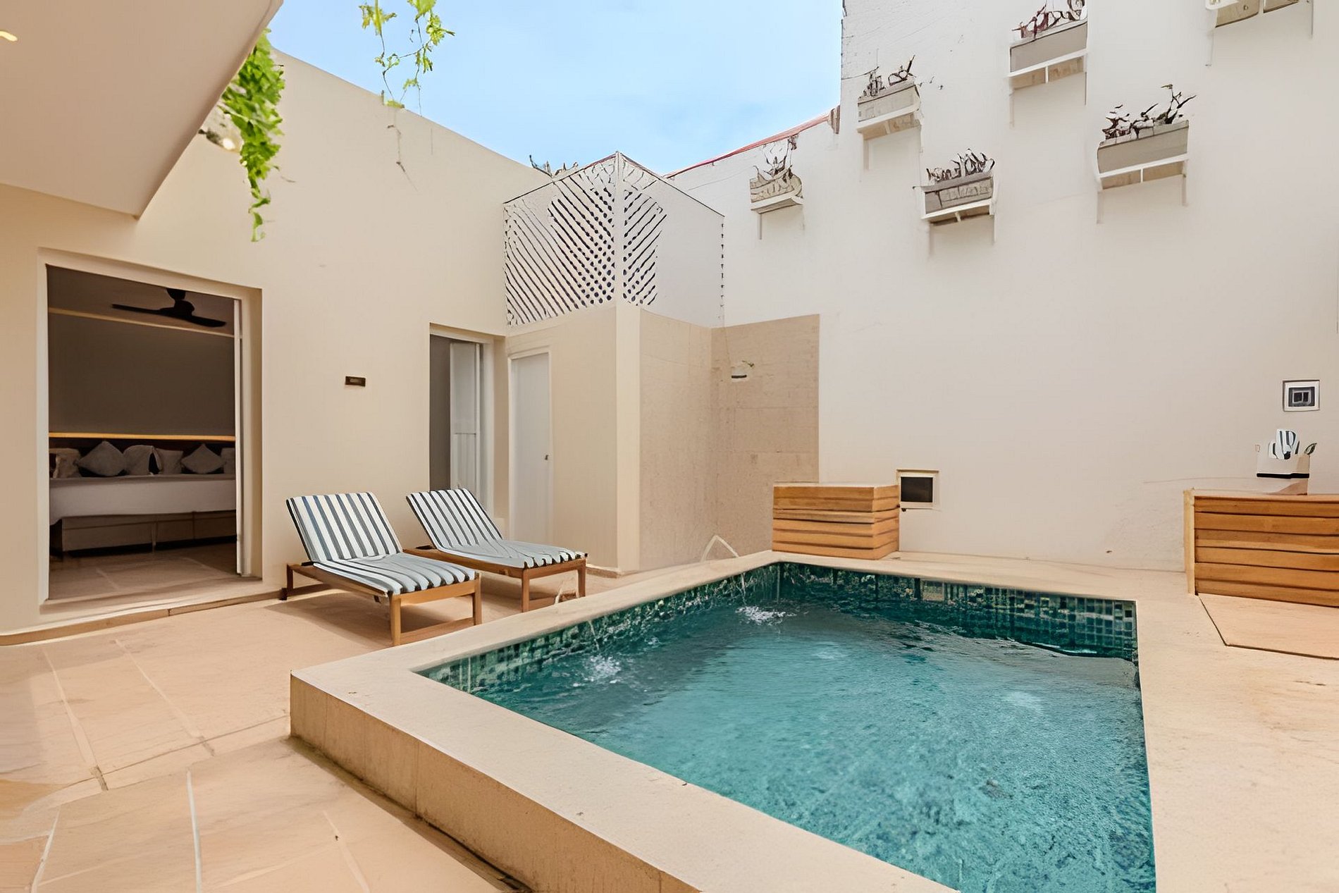 Vivan el lujo de una escapada exclusiva en el corazón de Getsemaní. A pasos de la icónica Plaza de la Trinidad, esta casa de 5 habitaciones combina historia y sofisticación: piscina privada, jacuzzi, terraza con vistas de ensueño y servicio de chef y aseo diario. Personal nocturno para su seguridad y comodidad. Un oasis elegante donde cada detalle está pensado para una estadía inolvidable.