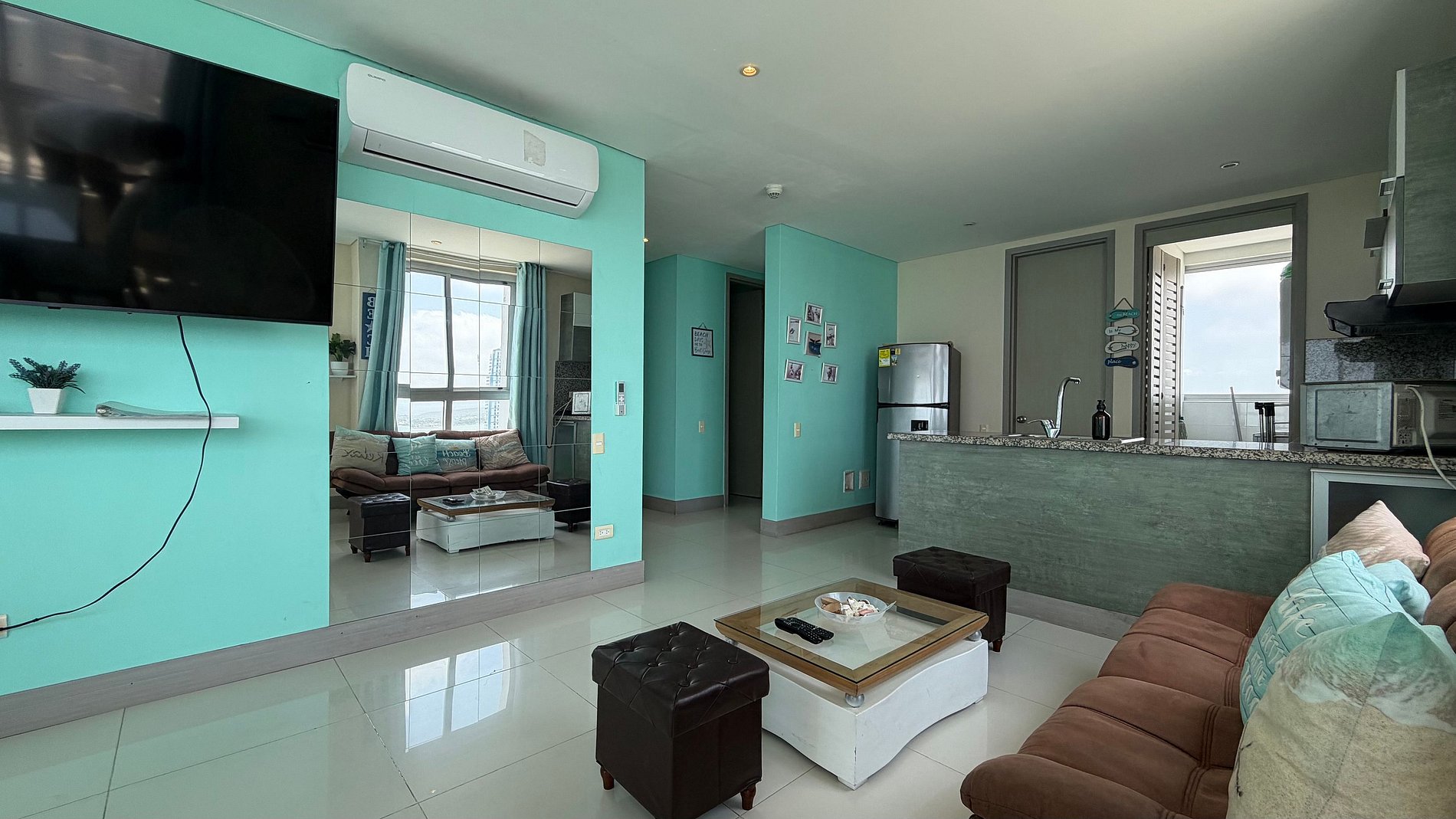 Ventanas y puertas: Mantén las puertas y ventanas cerradas cuando salgas para evitar que el clima y la humedad afecten el ambiente dentro del apartamento.